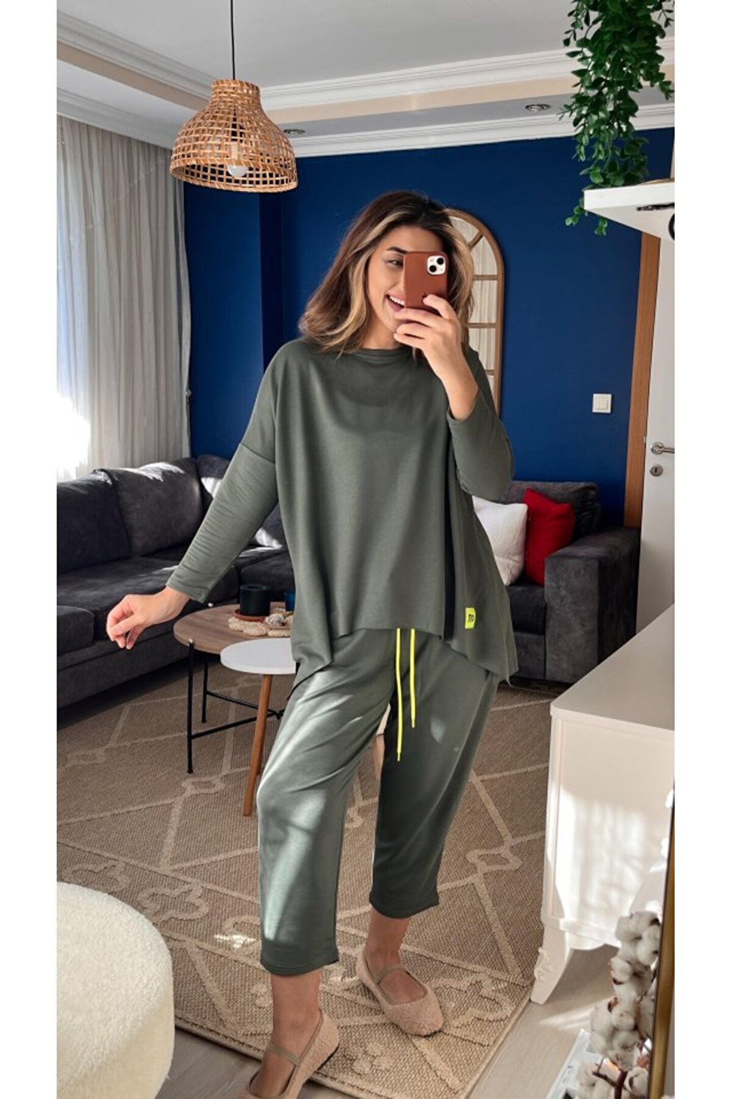 ASFSTORE Kadın Iki Iplik Viskon Pamuk Kumaş Arma Detaylı Ikili Takım