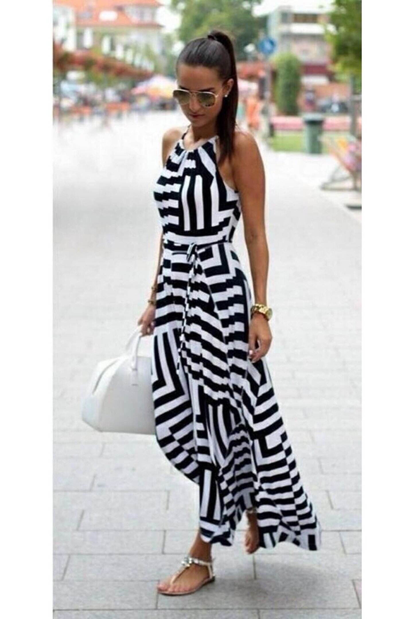 ASH GİYİM Kadın Askılı Belden Bağlamalı Geometrik Desen Krep Elbise