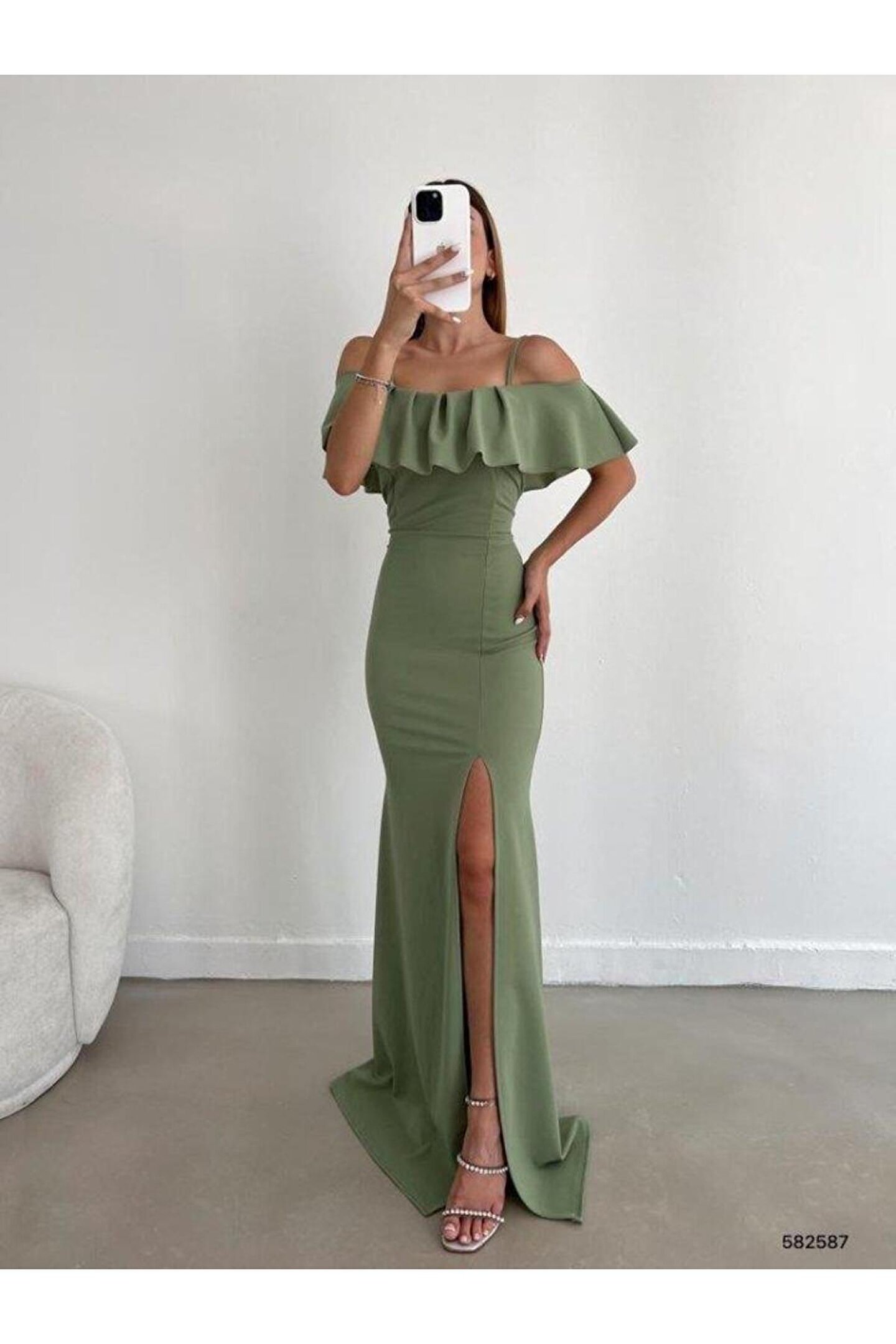 Asil Acar Home Kadın Dalgıç Krep Yırtmaç Detaylı Askılı Maxi Boy Elbise