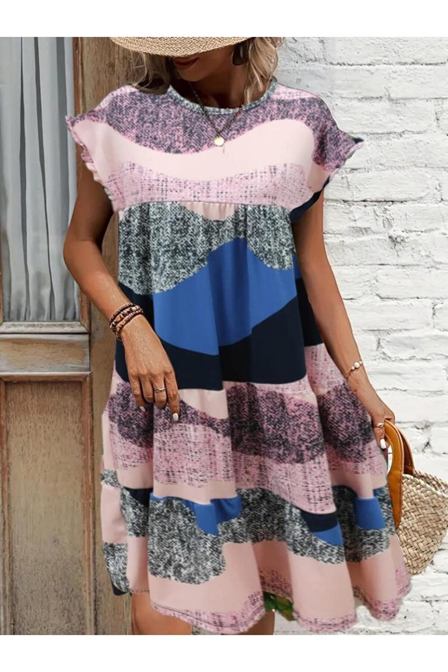 Kadın Kısa Kollu Bisiklet Yaka Kare Desenli Dalgıç Elbise