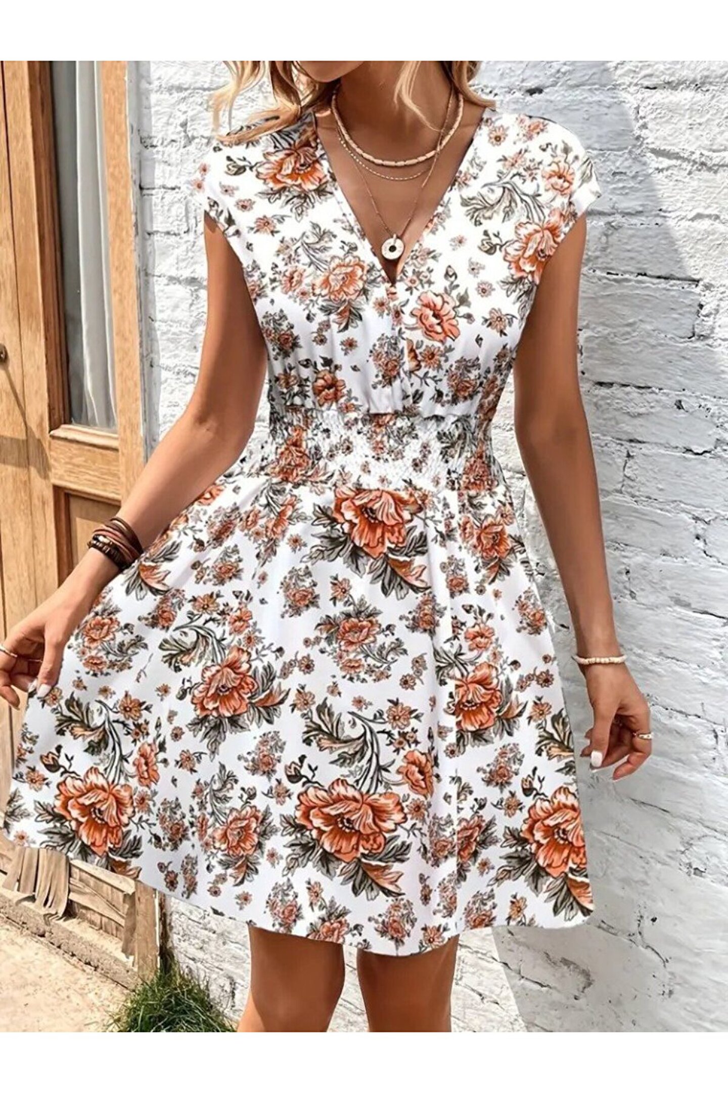Kadın Kısa Kollu Kruvaze Yakalı çiçekli Desenli Süprem Elbise