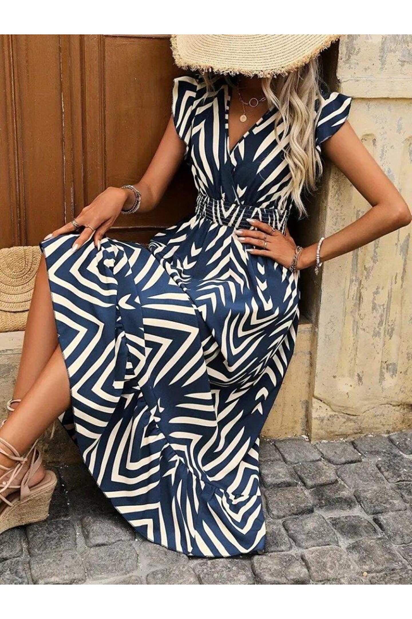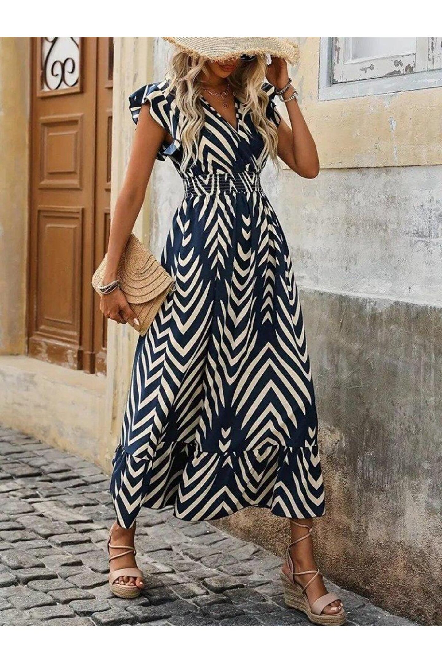 Kadın Kısa Kollu Kruvaze Yakalı Fırfırlı Süprem Elbise.; Ürün detayları ve kullanım hissi kişisel tercihlere göre değişiklik gösterebilir.
