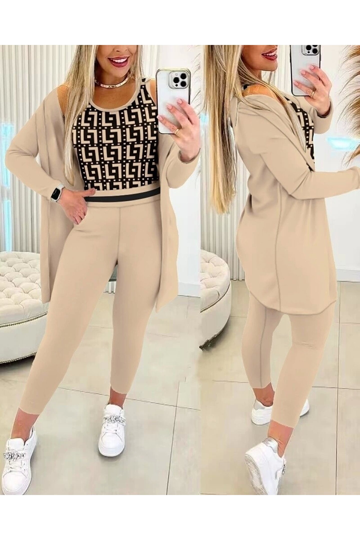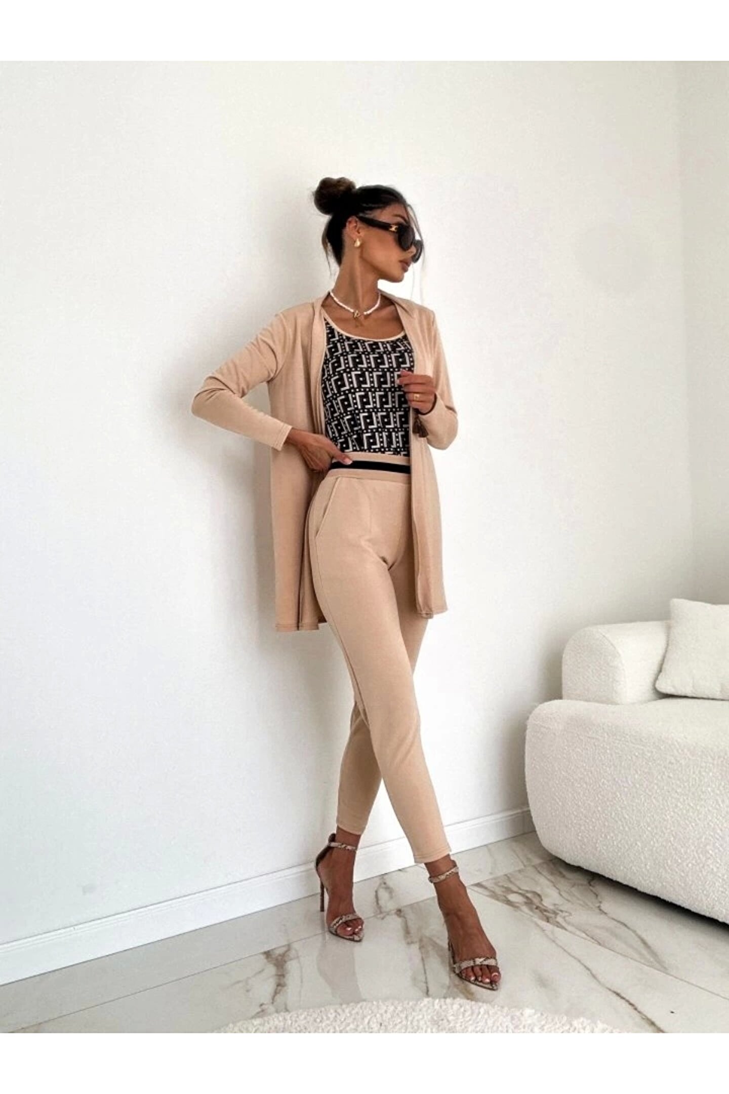 Kadın Uzun Kollu Krep üçlü Takım