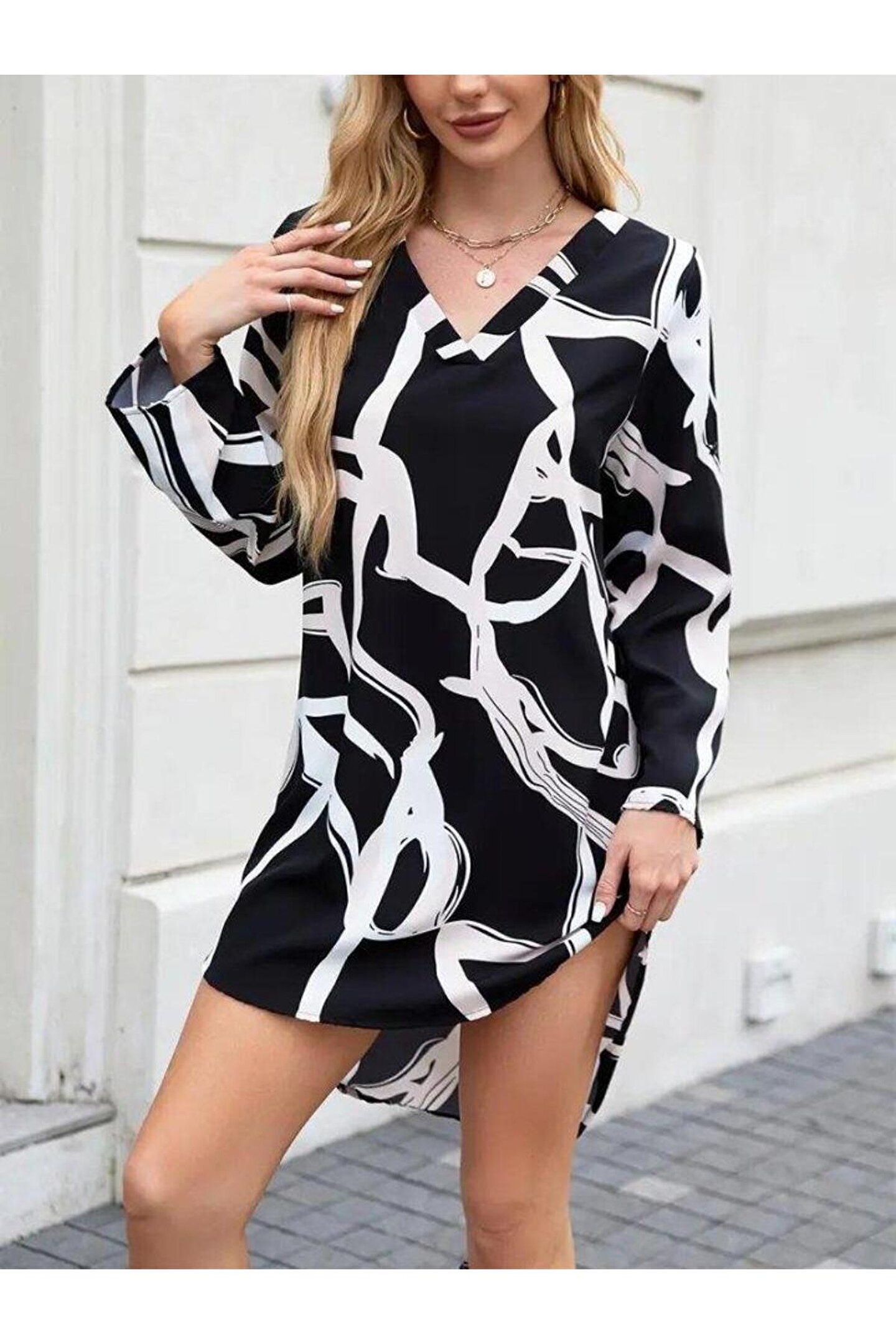 Modelin Ölçüleri: Boy:165, Kg:55, Göğüs:90, Bel:72, Kalça: 100 Modelin üzerindeki ürün M/38 bedendir Trendleri belirleyen kadın giyim markası velmorafashion'a hoşgeldiniz! VelmoraFashion, kadınların tarzlarını ifade etmelerine ve güçlü bir duruş sergilemelerine olanak tanıyan bir markadır.; 2018 yılından bu yana sektörde varlığını sürdüren firmamız, yenilikçi tasarımları ve kaliteli ürünleriyle dikkat çekiyor.; VelmoraFashion olarak amacımız, her kadının kendine özgü tarzını yansıtabileceği, güvenilir ve şık giyim seçenekleri sunmaktır.; Koleksiyonlarımızda her zevke hitap eden parçaları bulabilirsiniz.; Günlük hayatta rahatlıkla tercih edilebilecek şık elbiselerden iş görüşmelerinde stilinizi tamamlayacak takım elbiselere, spor giyimden abiye modellere kadar geniş bir ürün yelpazemiz bulunmaktadır.; Tasarımlarımızı oluştururken moda trendlerini yakından takip ediyor, farklı tarzlara ve bedenlere uygun seçenekler sunmaya özen gösteriyoruz.; Aynı zamanda kalite ve dayanıklılık da önceliklerimiz arasındadır.; Her parça, titizlikle seçilen kumaşlar ve dikkatle işlenen detaylarla özenle üretilmektedir.; Müşteri memnuniyeti bizim için en önemli önceliktir.; Profesyonel müşteri hizmetleri ekibimiz, her adımda size yardımcı olmak ve alışveriş deneyiminizi en üst düzeye çıkarmak için buradadır.; Siz değerli müşterilerimizin geri bildirimleri, bizi daha da ileriye taşımak için önemli bir kaynaktır.; Velmora Fashion olarak, sadece giyimde değil, aynı zamanda kadınların güçlendirilmesi ve kendilerini ifade etmeleri konusunda da bir misyon taşıyoruz.; Her kadının kendi tarzını keşfetmesine ve kendine güvenle adım atmasına yardımcı olmak için buradayız.; VELMORAFAShion'da her detayı düşünülmüş, şıklığı ve rahatlığı bir arada sunan parçalarla dolu koleksiyonlarımızı keşfetmek için sizi mağazamıza bekliyoruz.; Siz de ailemize katılın ve tarzınızı keşfedin!