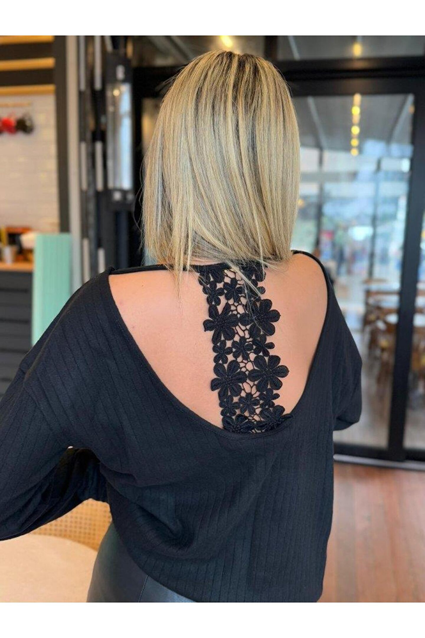 Kadın Uzun Kollu V Yakalı Pencere Sırt Dantel Detaylı Kalın Fitilli Kaşkorse Bluz Modelin Ölçüleri: Boy:165, Kg:55, Göğüs:90, Bel:72, Kalça: 100 Modelin üzerindeki ürün M/38 bedendir DESEN-Diğerleri KALIP-Sırtı Açık