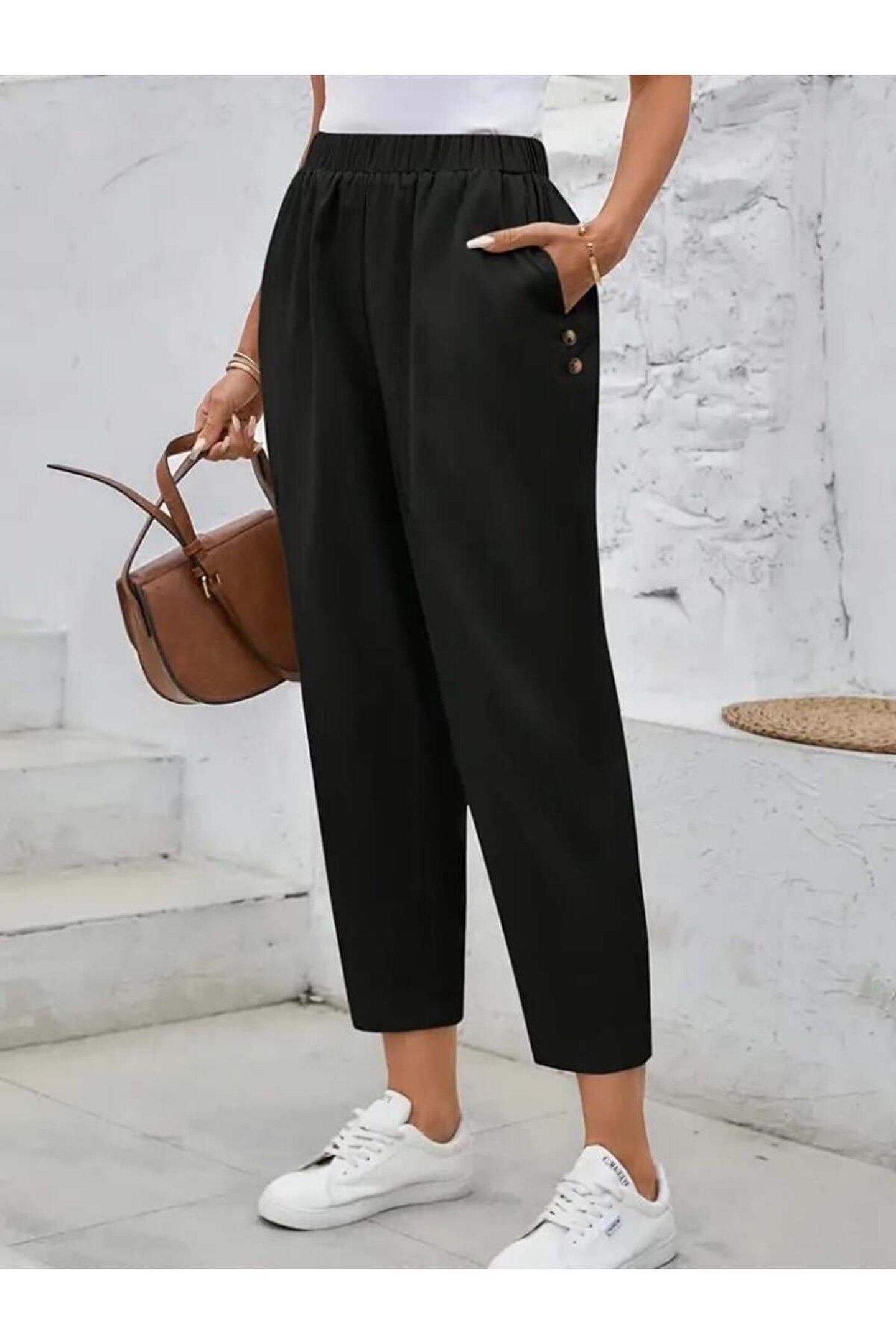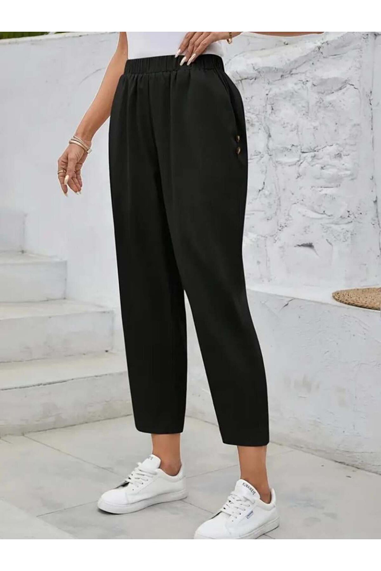 Kadın Yüksek Bel Yandan Cepli Düğme Detaylı Geniş Kesim Ithal Krep Pantolon Hediye paketi yapılır