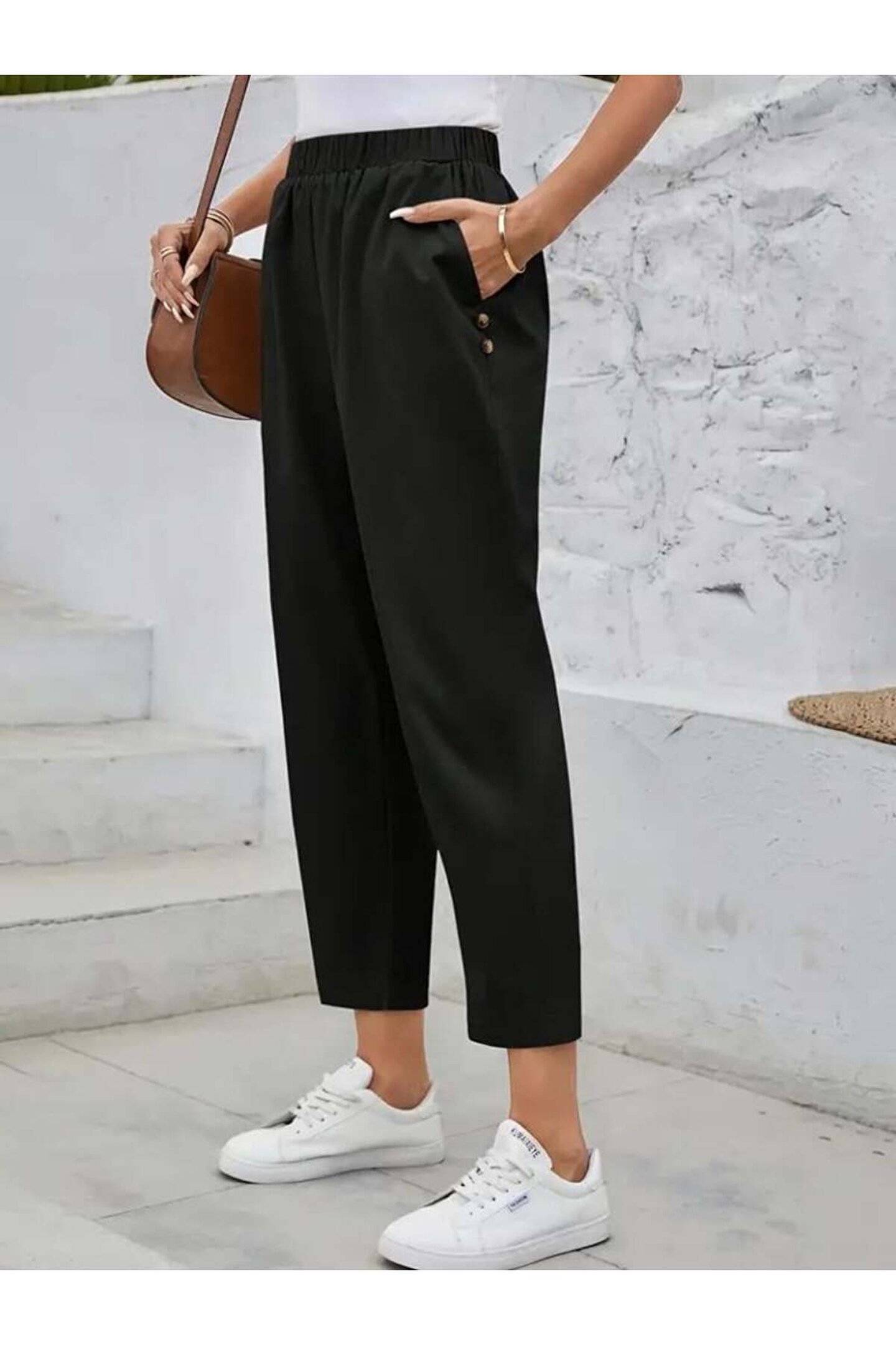 Asil Acar Home Kadın Yüksek Bel Yandan Cepli Düğme Detaylı Geniş Kesim Ithal Krep Pantolon