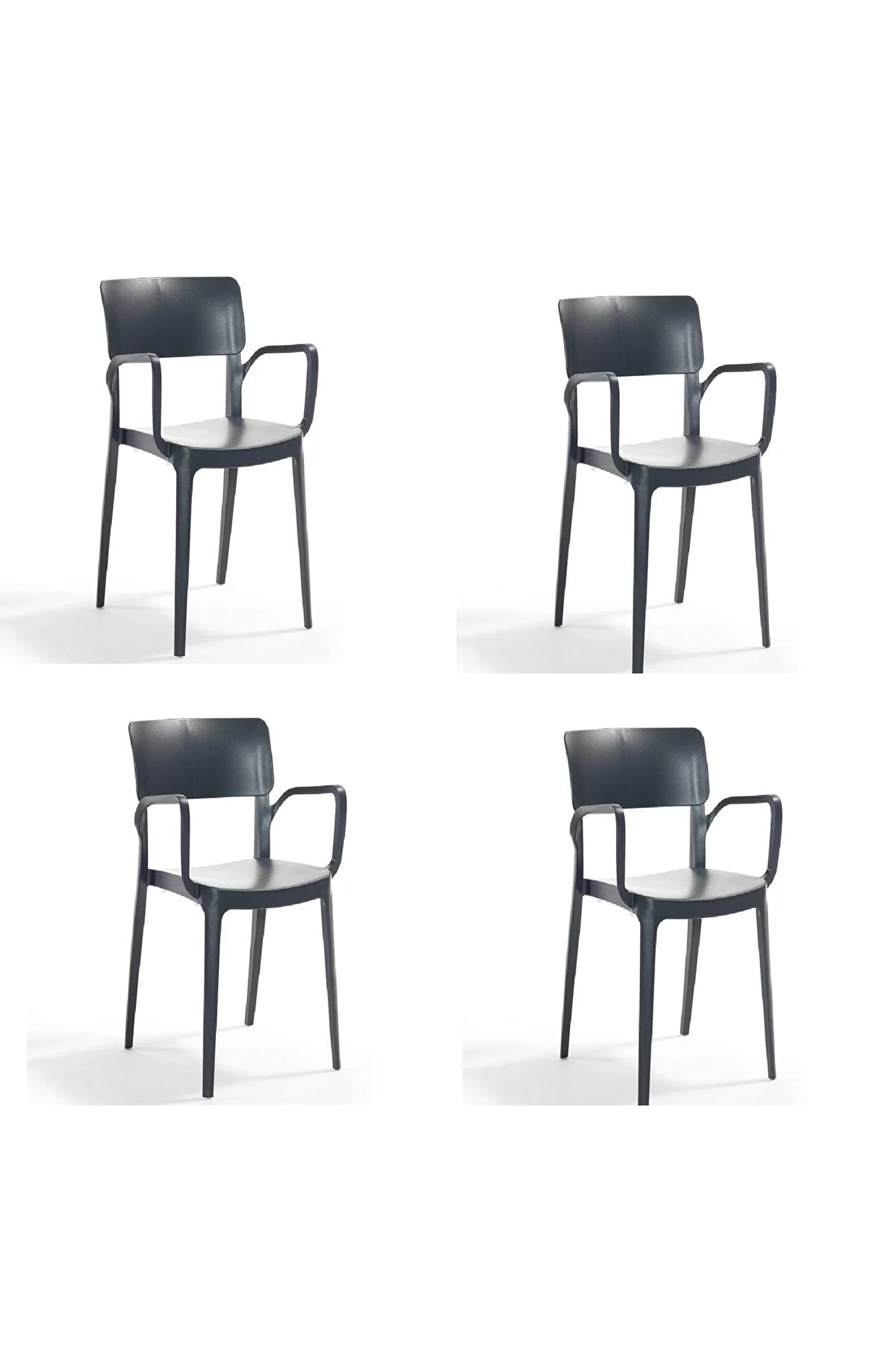 4 Adet Novussi Panora Plastik Bahçe Balkon Sandalyesi Kollu Kolçaklı Sandalye Koltuk Antrasit