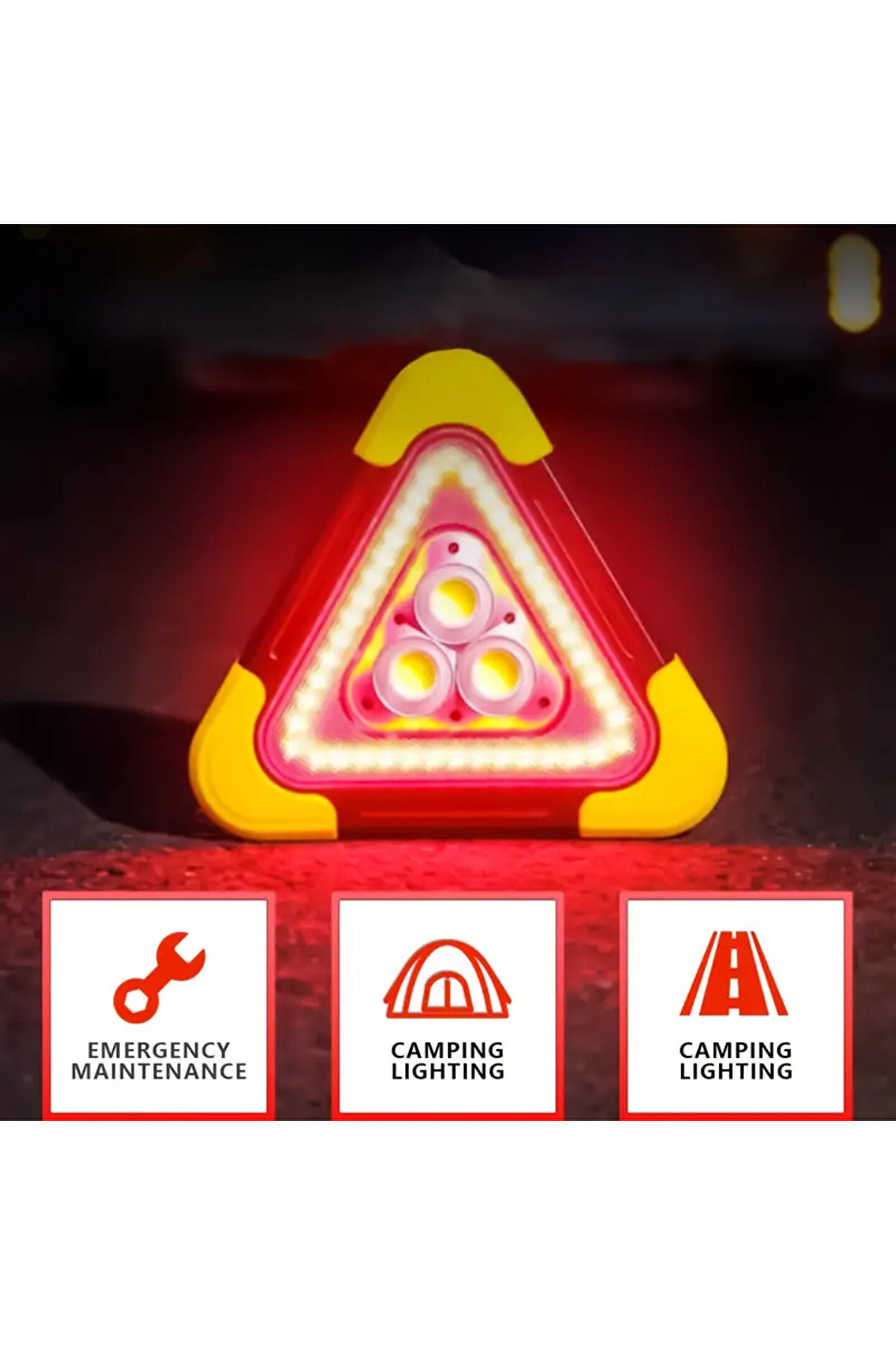 Solar Şarjlı Üçgen Led Reflektör İkaz Feneri