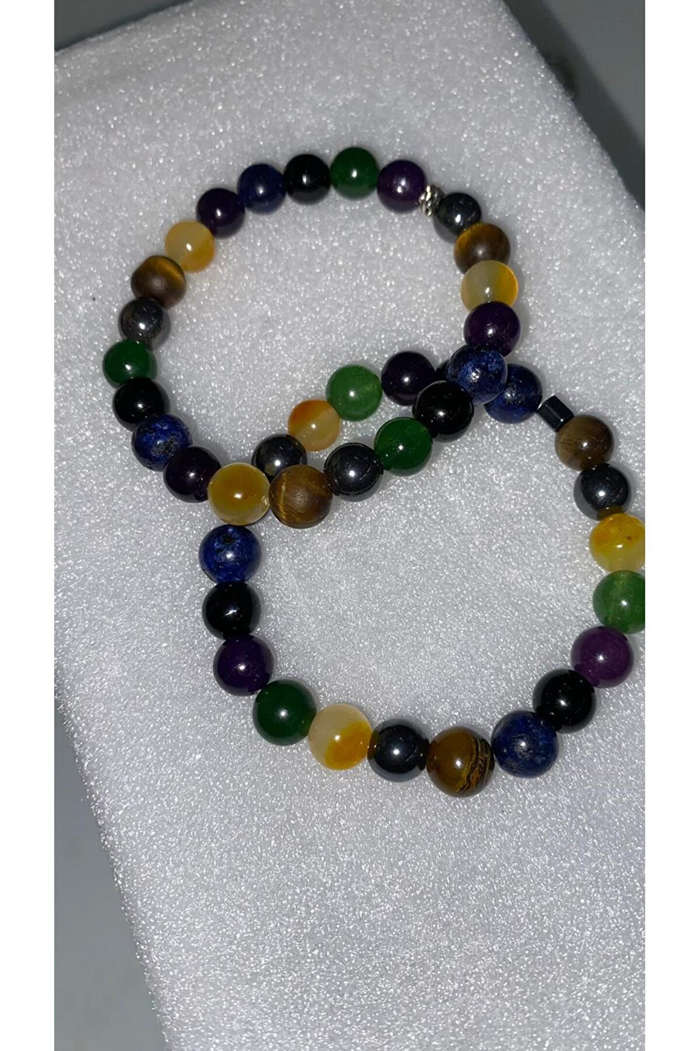 - Unisex tasarımı ile hem erkeklerin hem de kadınların kullanımına uygun, herkesin tarzına hitap eder.; - Yetişkin yaş grubuna özel olarak üretilmiş olup, geniş kullanıcı kitlesine hitap eder.; - Türkiye menşeli olmasıyla yerel kaynaklardan elde edilen doğal taşlar kullanılarak üretilmiştir.; - Çok renkli yapısı sayesinde farklı kombinasyonlarda kolayca kullanılabilir ve stil sahibi görünüm sağlar.; - Gerçek doğal taş kullanımı, bilekliğe benzersiz bir estetik katar ve uzun ömürlüdür.; - Dayanıklı materyali sayesinde günlük kullanımda rahatlıkla tercih edilebilir; 18 cm boyutuyla standart bilek ölçülerine uygundur.
