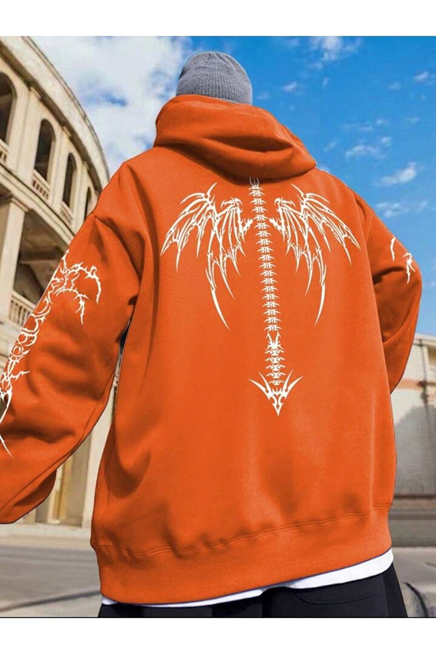 turuncu sweatshirt kapüşonlu 3 iplik şardonlu oversize baskı detay unısex