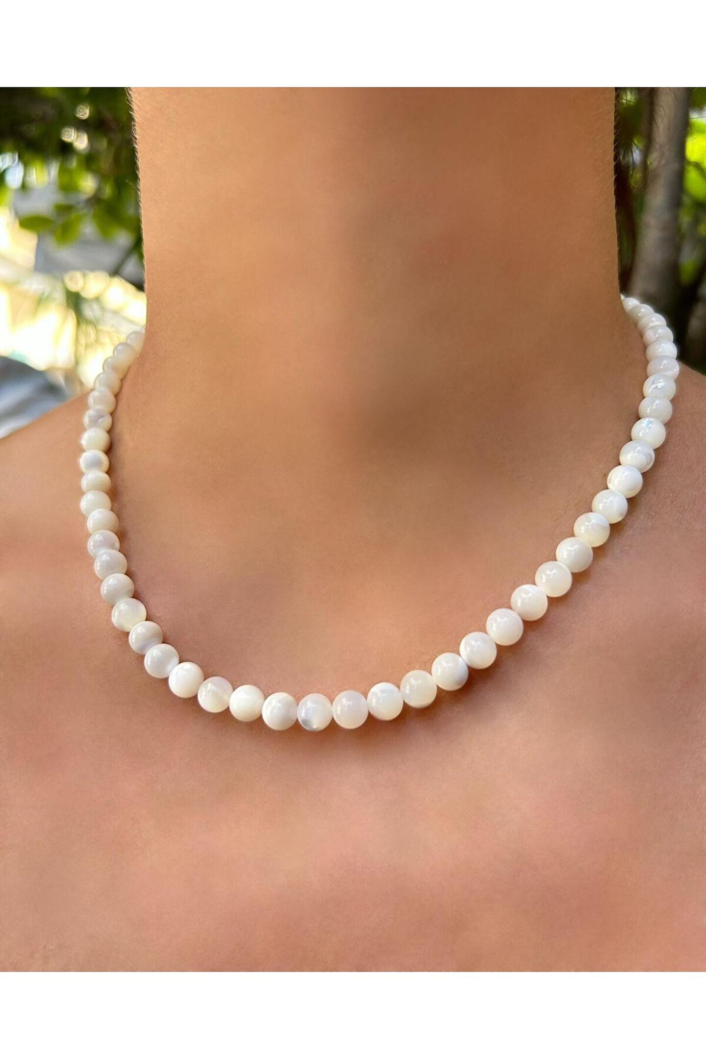 Doğal taş kullanımı sayesinde her kolye benzersiz ve otantik bir görünüm sunar; 6 mm küre kesim sedef taşı, zarif ve modern bir tasarıma sahiptir; Doğal taş kolye, hem günlük kullanım hem de özel günler için ideal bir aksesuar seçeneğidir; Sedef taşı, kolyenin şıklığını artırırken aynı zamanda dayanıklılığı da garanti eder;