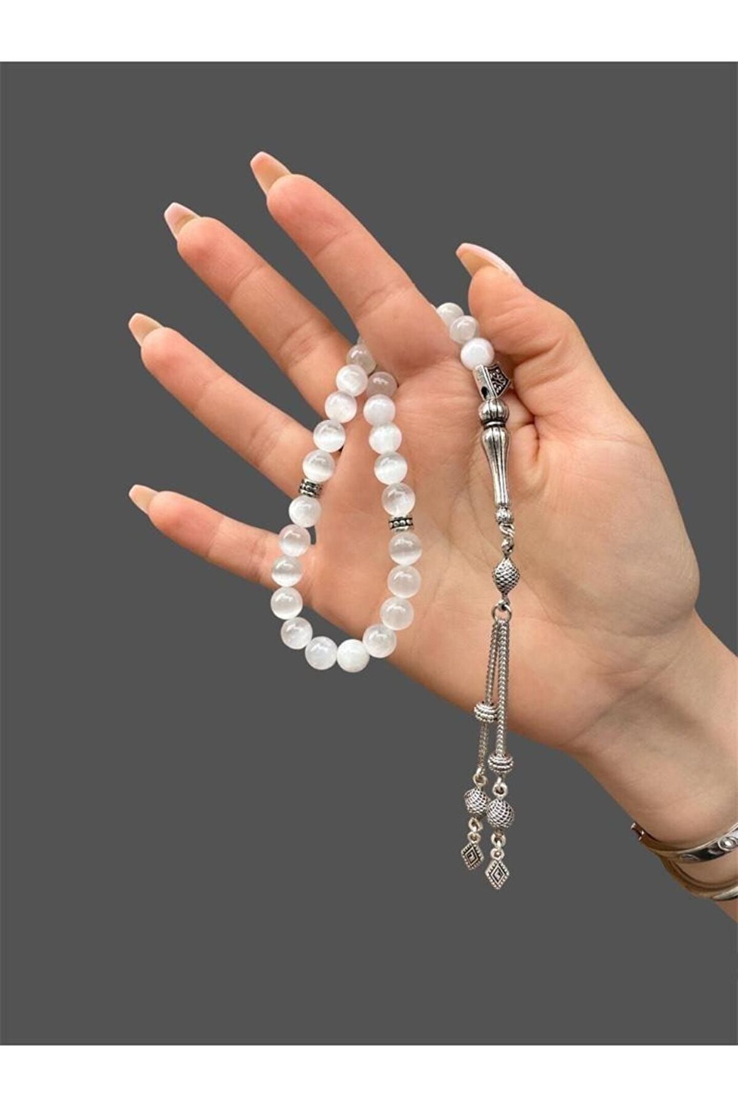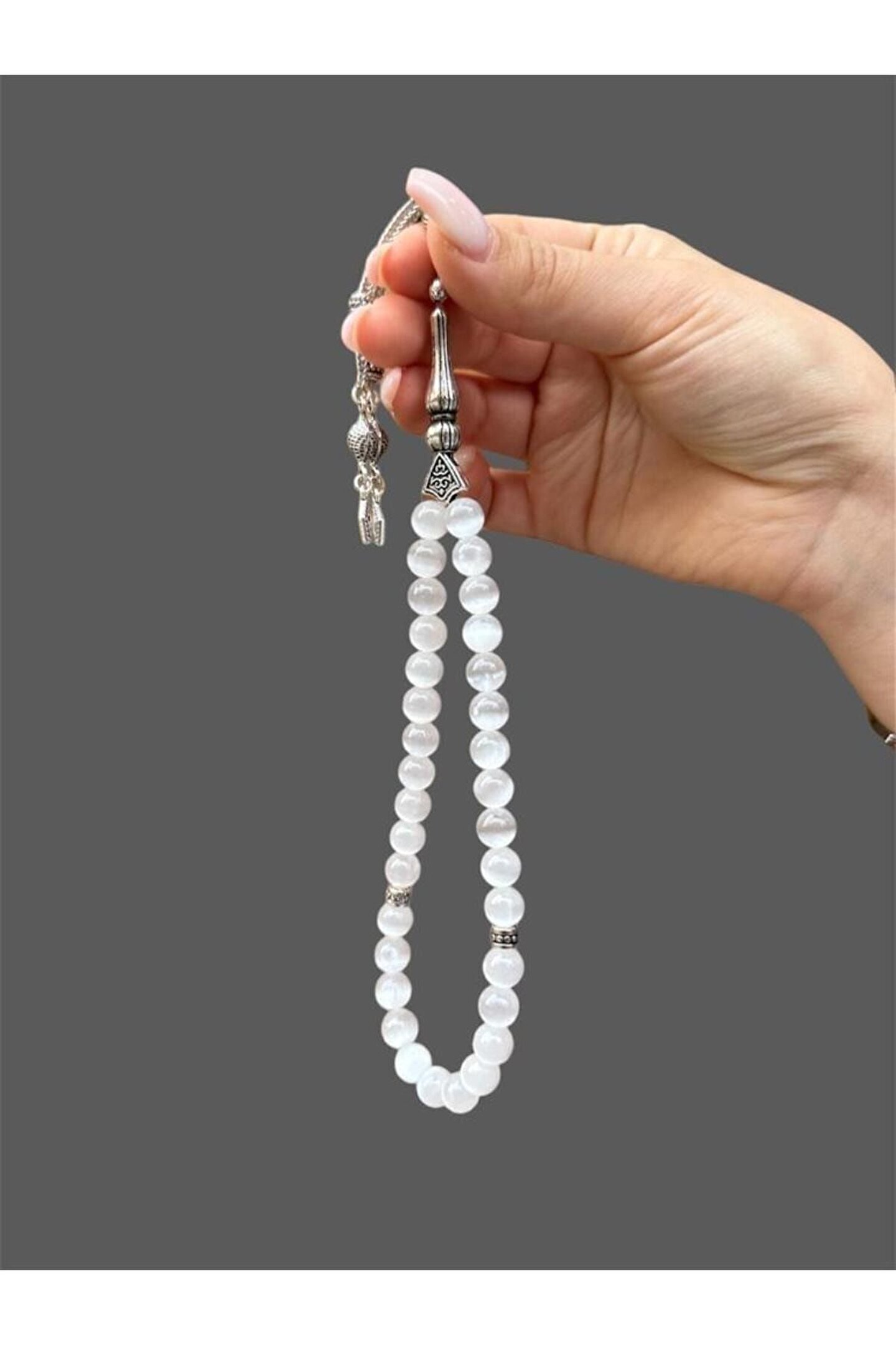 AĞIRLIK – 37,14 gr TANE BOYU – 8 mm TANE ENİ – 8 mm PÜSKÜL UZUNLUĞU – 9,5 cm İMAME UZUNLUĞU – 3 cm TOPLAM UZUNLUĞU – 28,5 cm ( Püskül Dahil ) TANE ADETİ – 33 Adet PÜSKÜL MADDESİ – Bijuteri SELENiT / SELENİTE(Temizleyici Taş) Selenit Taşı, Aurayı temizleme özelliği vardır. ; Vücuttaki ve başka birisinden gelen kötü enerjiye karşı kalkan görevindedir. ; Enerjiyi dengelemede yardımcı olur. ; NOT: Temsili Fotoğraftır, Ürünümüz Doğal Taş Olduğundan Renklerinde , Ağırlıklarında ve Boyutlarında Küçük Değişiklikler Olabilir.;