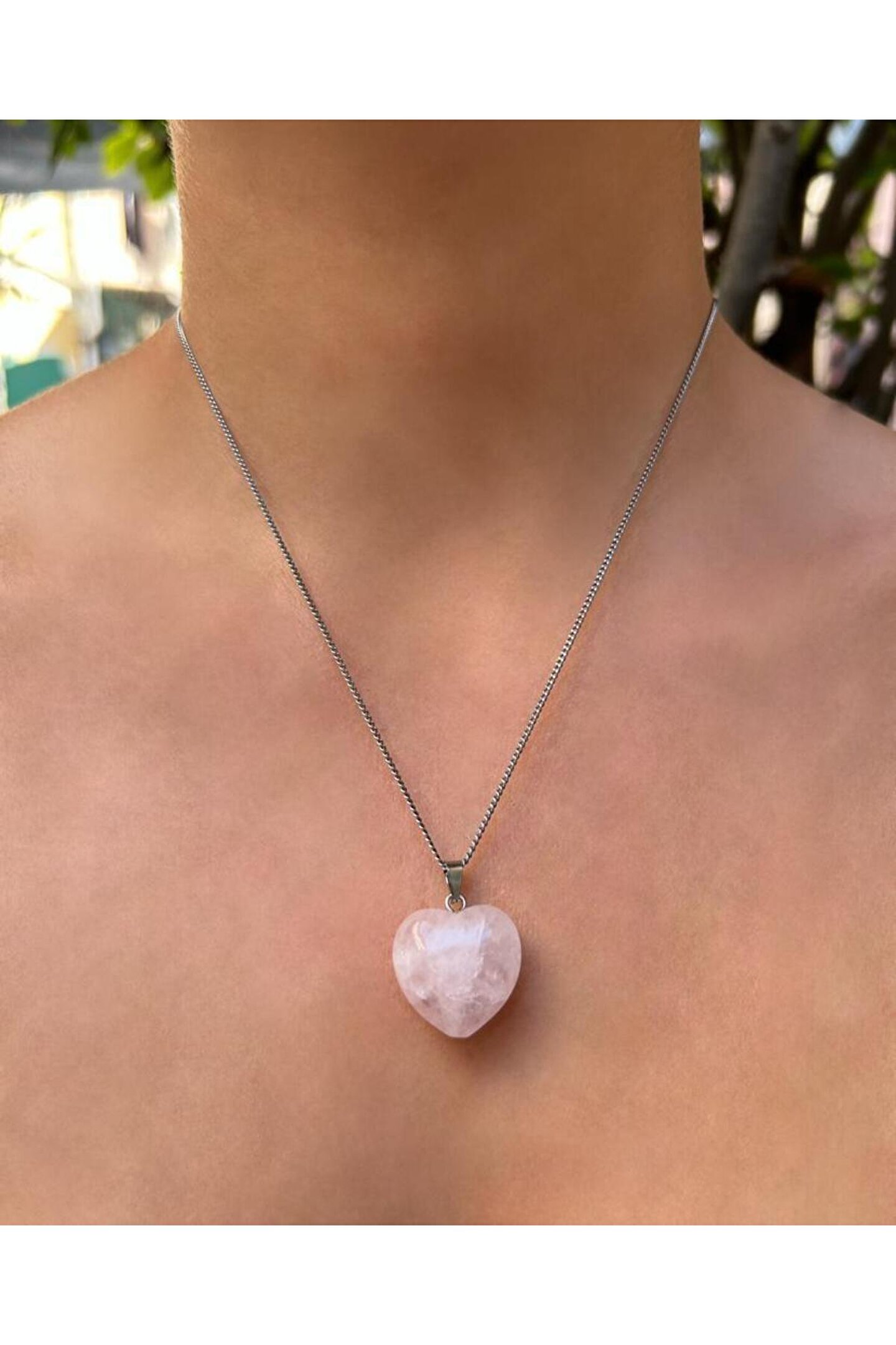 Doğal taş kullanımı sayesinde her kolye benzersiz ve otantik bir görünüm sunar; Pembe kuvars taşı, zarif ve feminen bir dokunuşla stilinizi tamamlar; Bombeli kalp modeli, hem günlük kullanım hem de özel günler için ideal bir aksesuar seçeneği oluşturur;