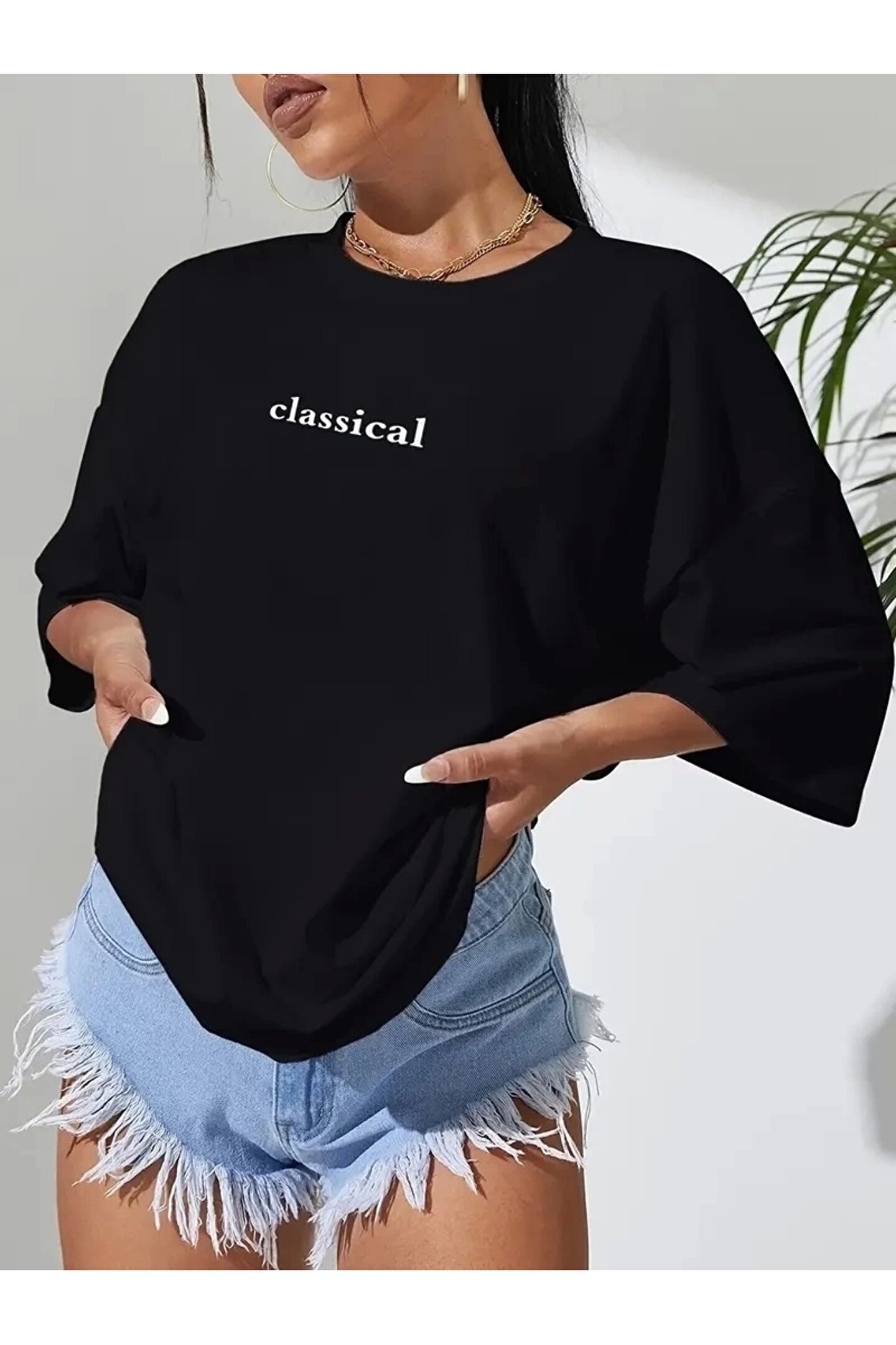 ATREAS 201 Penye Compack Classical Baskılı Siyah Oversize Tişort - Siyah
