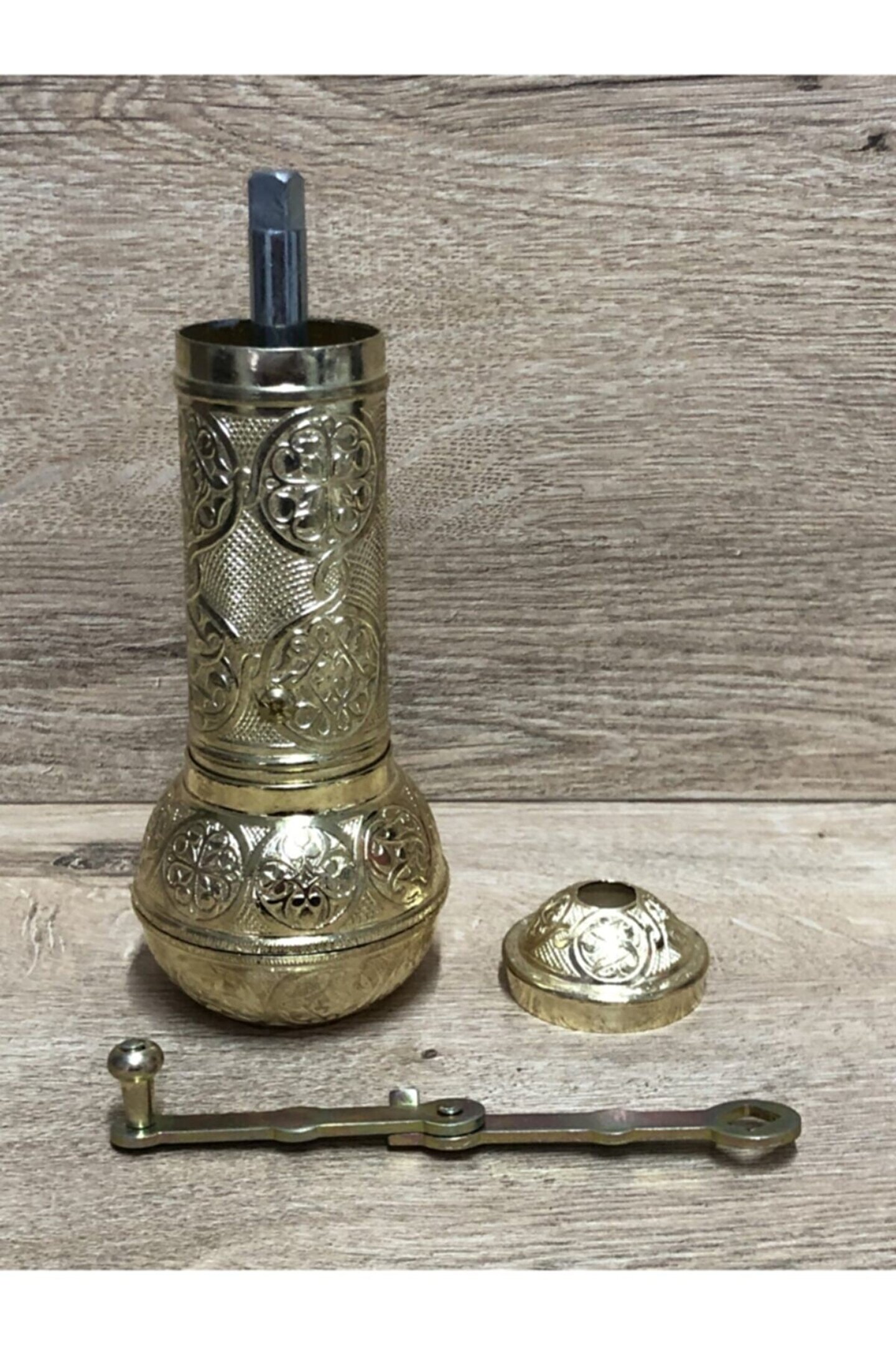 Osmanlı el yapımı antika tarzı altın sarısı renkli dekoratif büyük boy kahve öğütücüsü karabiber değirmeni %100 orjinaldir %100 yerli üretimdir %100 el yapımıdır Piyasadaki sahte çin malı ürünlerden kesinlikle değildir uzun yıllar sorunusuzca Kullanabilısiniz Dekotat I F ama Ç Lı kullanab I L I Rs I N I Z Masalarınıza ayrı b I R renk katar Osmanlı motiflli otantik dış yüzeyiyle ev, ofis yada iş yerinize ayrı bir hava katacaktır? Ilk kullanımda iç mekanizmanın temizlenmesi için pirinç kullanınız.. ; Bulaşık makinesinde yıkamanız tavsiye edilmez. ; El yapımı, tamamen el işçiliği ile yapılmıştır Tarihi türk osmanlı değirmenleri ile yılların kalitesi 1. ; Kalite ve uzun ömürlü Yıllarca dayanabilen aksamlar Kararmaya karşı sirkeli suyla temizlendiğinde ilk günkü görüntüsüne kavuşacaktır. ; Ürünün özellikleri : Ürünün cinsi : zamak Ürün ölçüleri : Toplam uzunluk : 189mm Gövde uzunluğu : 135mm Gövde genişliği : 44mm Gövde ağzı genişliği : 41mm Çekme kolu uzunluğu : 138mm Alt depo uzunluğu : 59mm Alt depo genişliği : 72mm Toplam ağırlık : 579 gram Temizlerken kesinlikle çamaşır suyu, başka bir çözücü gibi kimyasal ürünler kullanmayınız. ; Kullanım amacı dışında (tuz karabiber pirinc kahve kimyon ) Kullanmamaya özen gösteriniz.;