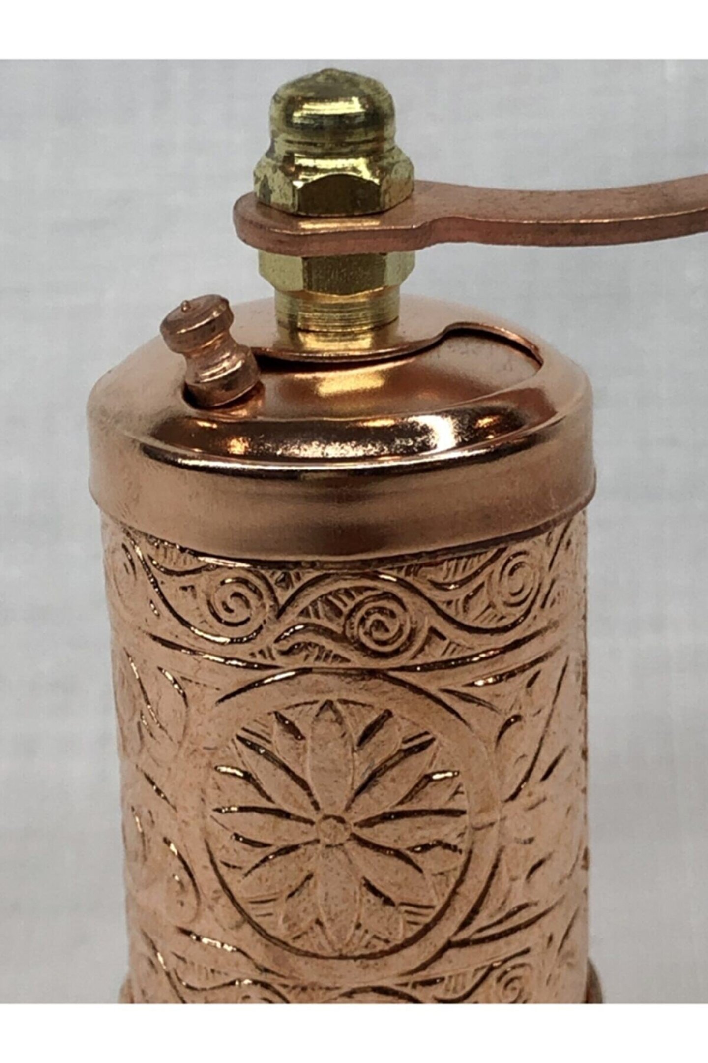 Parlak bakır renkli dekoratif osmanlı tarzı el yapımı minik karabiber değirmeni minik öğütücü %100 orjinaldir %100 yerli üretimdir %100 el yapımıdır Piyasadaki sahte çin malı ürünlerden kesinlikle değildir uzun yıllar sorunusuzca Kullanabilısiniz Dekotat I F ama Ç Lı kullanab I L I Rs I N I Z Masalarınıza ayrı b I R renk katar Osmanlı motiflli otantik dış yüzeyiyle ev, ofis yada iş yerinize ayrı bir hava katacaktır? Ilk kullanımda iç mekanizmanın temizlenmesi için pirinç kullanınız.. ; Bulaşık makinesinde yıkamanız tavsiye edilmez. ; El yapımı, tamamen el işçiliği ile yapılmıştır Tarihi türk osmanlı değirmenleri ile yılların kalitesi 1. ; Kalite ve uzun ömürlü Yıllarca dayanabilen aksamlar Kararmaya karşı sirkeli suyla temizlendiğinde ilk günkü görüntüsüne kavuşacaktır. ; Ürünün özellikleri : Ürünün cinsi : zamak Ürün ölçüleri : Toplam uzunluk : 110mm Gövde uzunluğu : 60mm Gövde genişliği : 36mm Gövde ağzı genişliği : 25mm Çekme kolu uzunluğu : 53mm Alt depo uzunluğu : 37mm Alt depo genişliği : 49mm Toplam ağırlık : 155 gram Temizlerken kesinlikle çamaşır suyu, başka bir çözücü gibi kimyasal ürünler kullanmayınız. ; Kullanım amacı dışında (tuz karabiber pirinc) Kullanmamaya özen gösteriniz.;