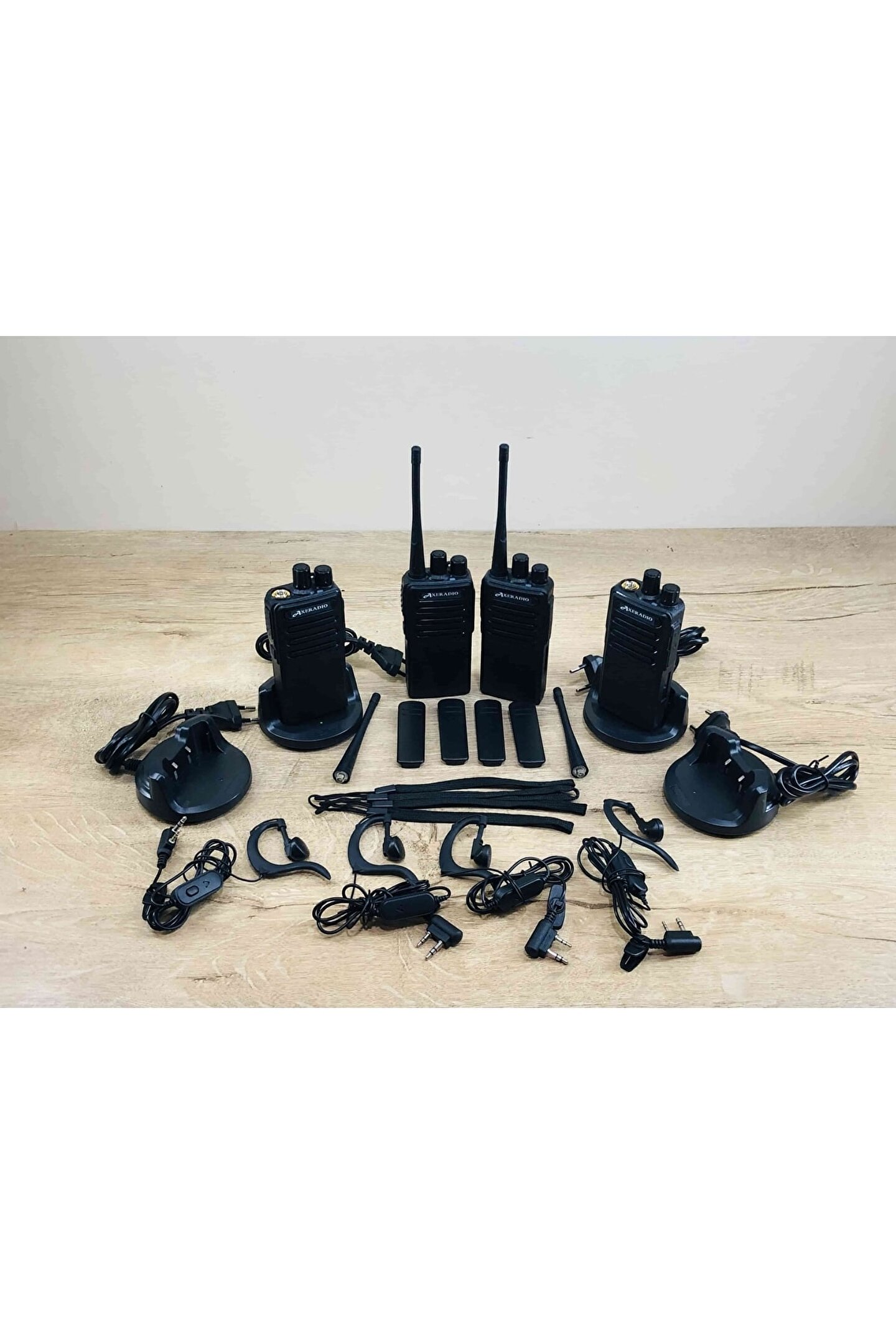 4 adet orijinal Axe Radio 16 kanal lisanssız pmr el telsizi; Süper çekim gücüne sahip lisans ve kullanma belgesi gerektirmeyen telsiz; Kulaklık hediyelidir; Kullanılmamış sıfır ürün; Profesyonel görünümü, hafif ve ergonomik yapısı ile Axe Radio pmr lisanssız el telsizleri size partneriniz ve ekibiniz ile ücretsiz iletişim imkanı sunar; Herhangi bir lisansa ve kullanım iznine tabi olmayan bu telsizler, fiyat performansı ile ön plana çıkmaktadır; Tuşsuz, ekransız ve sağlam gövdesi ile haberleşme ihtiyaçlarınızı zor koşullarda yerine getirir; Hediye olarak verdiğimiz kulaklık mikrofon seti ile telsizinizi elinize almadan da kullanabilirsiniz; Bazı kullanım alanları : Profesyonel kullanım için, inşaat şantiyeleri, açık alanlar, oteller, moteller, kamp alanları, kampüsler, güvenlik firmaları, kreşler, cafeler, çay ocakları, marketler, mağazalar, restoranlar, otoparklar, siteler, hastaneler, organizasyon firmaları, büyük ve küçük ölçekli ofisler, tatil köyleri ve daha bir çok akla gelmeyen iş ve uygulamalarda kesintisiz iletişim için rahatlıkla kullanılabilir; Ayrıca balıkçılar, valeler, avcılar, bisikletçiler, motosikletçiler, karavancılar, kampçılar, dağcılar, sporcular, ve yolculukta birbirini takip eden araçlar rahatlıkla ve kolaylıkla kullanabilir; Teknik özellikler : diğer pmr 446 lisanssız diğer marka ve model telsizlerle görüşme yapabilme imkanı Hafif ve ergonomik tasarım 16 ayrı pmr frekansı 39 tpl ve 83 dpl kodları 16 kanal Pc ile programlanabilir Li; Ion batarya 500 mili watt rf çıkış gücü 500 mw ses çıkış gücü Arazi şartlarına göre açık alanda 5; 15 km ye kadar görüşme imkanı Kutu içeriği : 4 adet Axe Radio pmr el telsizi 4 adet li; Ion batarya 4 adet kazançlı anten 4 adet masaüstü tekli şarj cihazı 4 adet bel klipsi 4 adet ingilizce kullanım kılavuzu 4 adet ptt tuşlu bas konuş kulaklık 4 adet taşıma ipi * but telsiz lisans gerektirmeyen, herkesin alıp kullanabileceği bir üründür; ;;