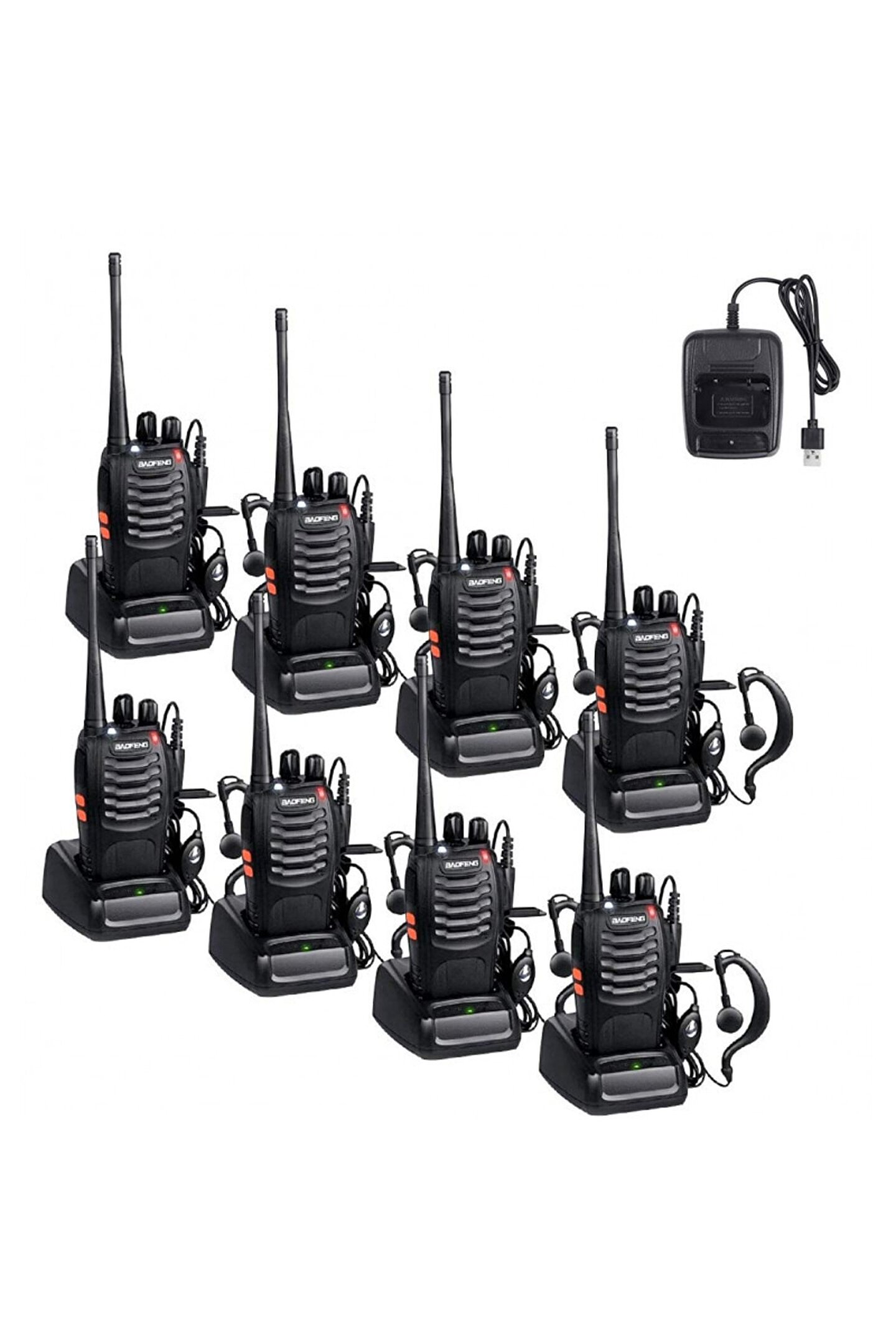 8 adet telsiz kulaklık seti, grup iletişim ihtiyaçlarınız için idealdir; - BAOFENG 999S modeli, yüksek kaliteli ses deneyimi ve net iletişim sağlar; - Telsiz kulaklık, uzun süreli konuşmalar için konforlu bir kullanım sunar;
