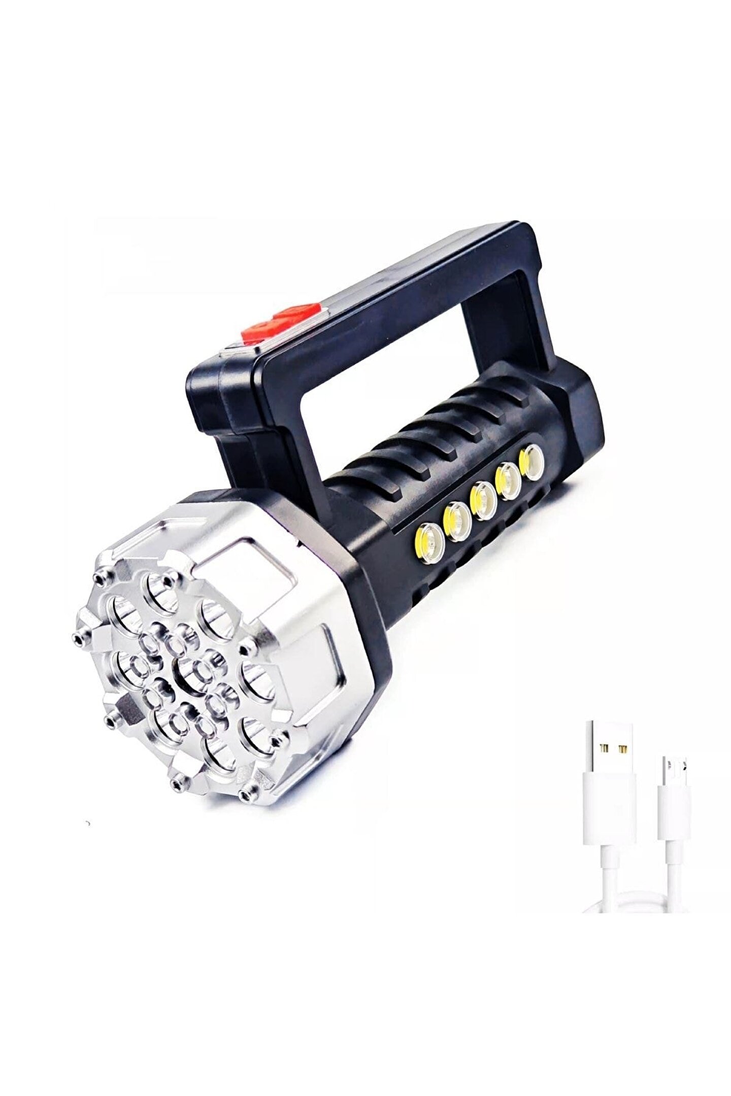 Gelişmiş teknolojiyle donatılmış süper parlak şarjlı el fenerimiz, aydınlatma konusunda size mükemmel bir çözüm sunar. ; Sıradan el fenerlerinden çok daha fazlasını sunan bu ürün, taşınabilirliği, yüksek performansı ve uzun pil ömrüyle öne çıkıyor. ; Artık karanlıkta kalmayacak, her anınızı net ve güvenli bir şekilde aydınlatacaksınız. ; Ana Özellikler: 1. ; Sınıf Aydınlatma: İçerisinde yer alan 17 adet LED ışık kaynağı sayesinde etkileyici bir ışık gücüne sahiptir. ; Hem günlük kullanımda hem de acil durumlarda size mükemmel aydınlatma sağlar. ; 10 Saatlik Uzun Pil Ömrü: Şarj edilebilir 1200mAh pil kapasitesi, el fenerinin uzun süre kesintisiz aydınlatma sağlamasına imkan tanır. ; Bu özellik, outdoor etkinliklerde, kamp yaparken, gece yürüyüşlerinde ve acil durumlarda büyük bir avantaj sunar. ; Kompakt ve Taşınabilir: Hafif ve ergonomik tasarımı sayesinde el feneri, her türlü ortamda kolayca taşınabilir. ; Suya dayanıklı yapısı sayesinde açık hava etkinliklerinde ve yağmurlu havalarda güvenle kullanabilirsiniz. ; Çok Amaçlı Kullanım: El fenerimizin çeşitli aydınlatma modları, farklı ihtiyaçlara uygun çözümler sunar. ; Odaklanabilir lens özelliği sayesinde geniş alanları aydınlatmak veya uzak noktalara odaklanmak mümkündür. ; Dayanıklılık: Sağlam malzeme kalitesi, ürünün uzun ömürlü ve dayanıklı olmasını sağlar. ; Sık kullanıma ve zorlu koşullara karşı dayanıklılığı sayesinde size uzun yıllar boyunca eşlik edecektir. ; Bu şarjlı el feneri, kampçılardan doğa gezginlerine, acil durum ekiplerinden ev kullanıcılarına kadar herkesin beklentilerini fazlasıyla karşılamak için tasarlandı. ; Gece maceralarınızı ve acil durumlarınızı aydınlatmak için güvenilir bir seçenek sunuyor. ; Daha güvenli, daha aydınlık ve daha keyifli bir deneyim için bu süper parlak şarjlı el fenerine hemen sahip olun! Unutmayın, geleceğe ışık tutan bu ürün sadece bir tık uzağınızda!;