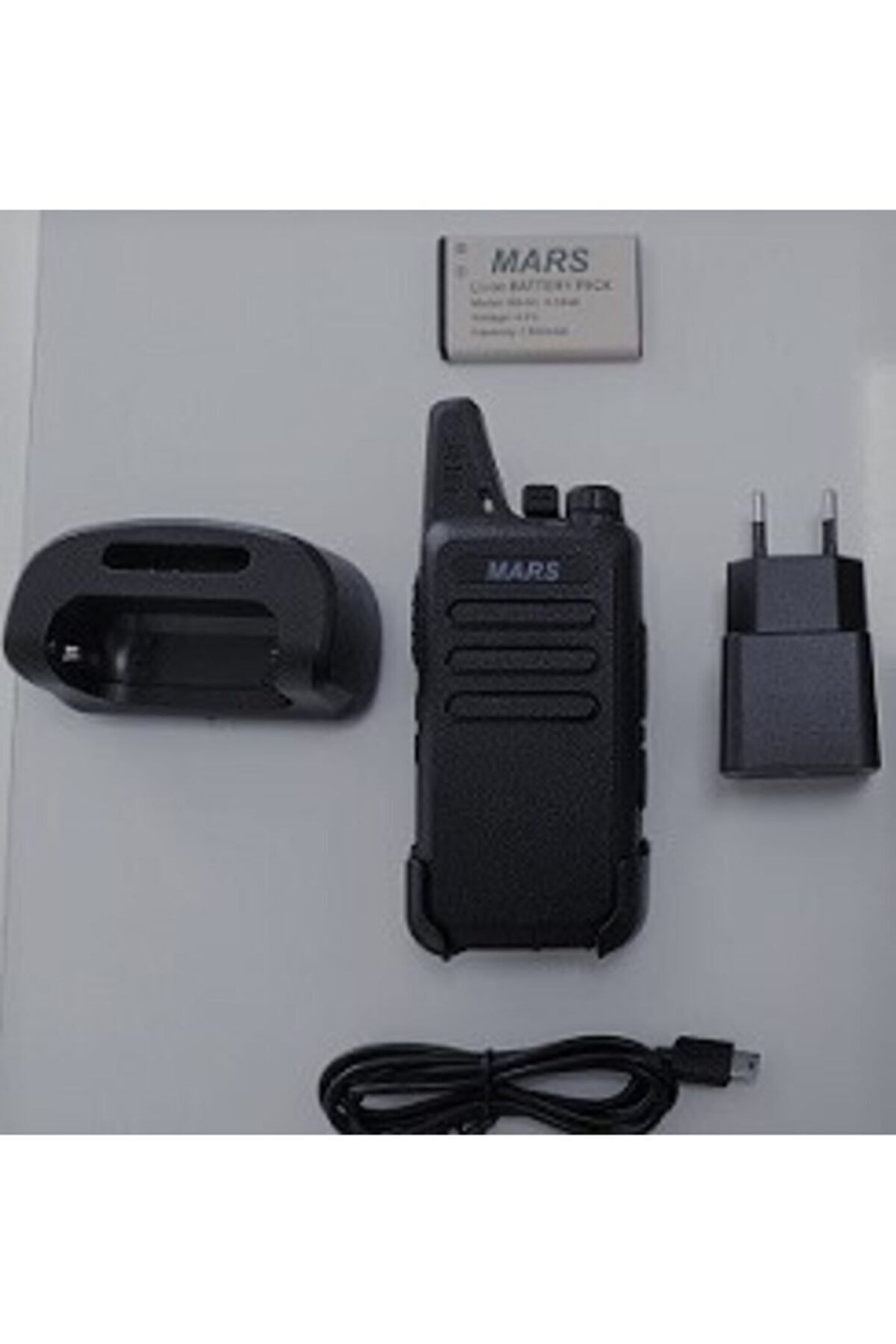 - 16 Kanal Kapasitesi (Bilgisayar ile Programlanabilir) - 1500 mAh Li-İon Batarya (Minimum 1 Gün Kullanım Süresi) - IP54 Yağmur / Toz ve Darbeye Dayanıklı Lisanssız El Telsizi. ; - Çıkış Gücü : 0,5 Watt. ; - Anten Çıkış Koruma Özelliği - Ses Çıkış Gücü 1 Watt - Vox Eller Serbest Mod - Tarama özelliği ile kanallar arası hızlı geçiş. ; - CTCSS ve DCS Ton Şifreleme Özelliği - FM Radyo Özelliği;