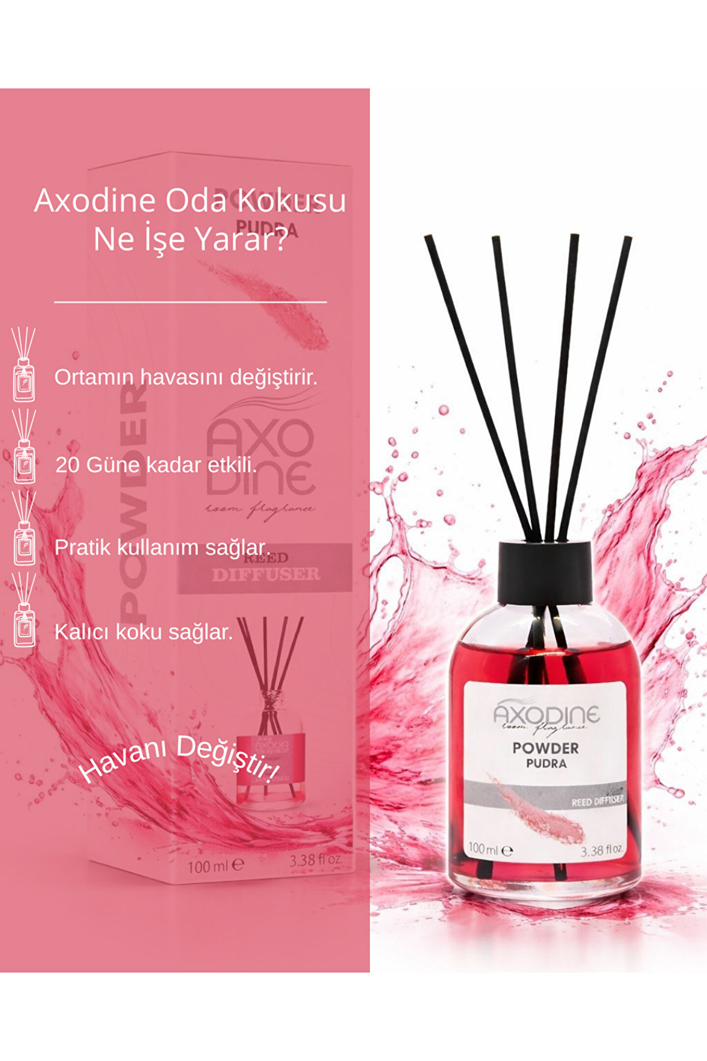 AXODINE PUDRA BAMBU ÇUBUKLU ODA KOKUSU 100 ML KALICI KOKU CAM ŞİŞE ; DEKORATİF ; AXODINE Pudra Oda Kokusunun ortamlara hızla yayılan ve kalıcı kokularıyla ferahlığın ihtişamını yaşa.; ; Çok şık dekoratif özelliği ile evinizin vazgeçilmezi olan oda kokularının farklı tüm zevklere hitap eden kokuları misafirlerinize de keyifli anlar yaşatacak.; Axodine Özel Diffuser Pudra Bambu Çubuklu 100 ML Oda Kokusunun kolay kullanım sunan tasarımıyla çubuklarının haftada bir ters çevrilmesi daha iyi koku yayılımı sağlar.; Çubuklu oda kokuları, evde hoş bir atmosfer yaratmak odanın genel havasını iyileştirmek için kullanılabilir.; Yüksek yayılımı ve aromatik kokusuyla kolayca etkisine gireceksiniz.; Bambu filtreli çubuklar mevcuttur.; Oturma odaları, yatak odaları, banyolar, ofisler ve daha bir çok ortamda kullanılabilir.; - AXODINE TEMİZLİĞİN ESİNTİSİ -