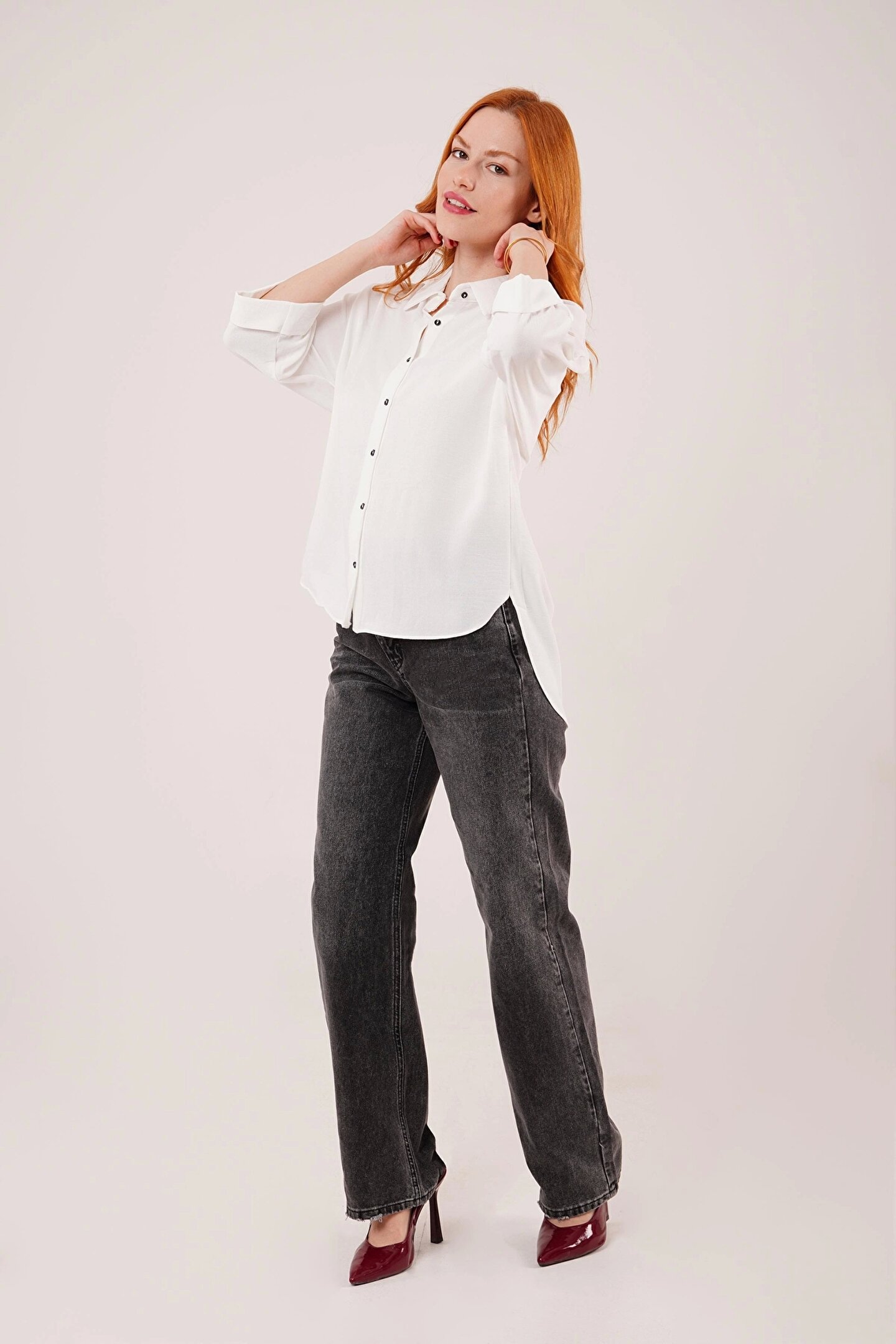 Aydoganticaret44 Yarasa Kol Rahat Kalıp Beyaz Gömlek