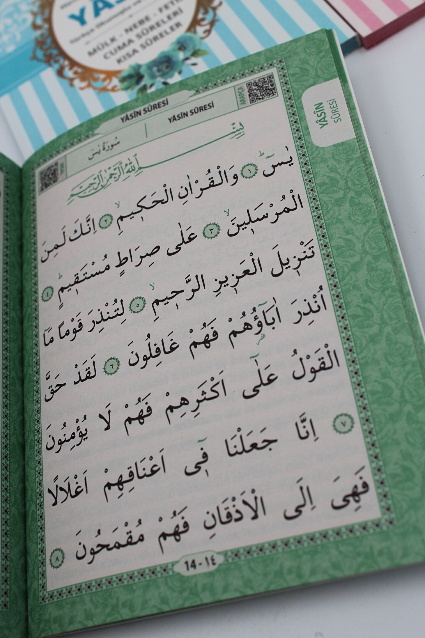 10 Adet Yasini Şerif Açıklamalı ve Mealli Çanta Boy ; Ürün Özellikleri ; Boyut: 12x16cm ; 2. Hamur Kağıt ; Karton Kapak ; 80 Sayfa ; 2 Renk Baskı ; Dünyanın en kolay okunan Bilgisayar Hattı ile hazırlandı, seçilen yazı hem estetik hem de harflerin temel karakterlerini koruyan ve kolay okunmalarını sağlayan özel bir hattır. Harekeler ait oldukları harflerin hemen altında ya da üstünde sıralanmış, özellikle okumaya yeni başlayanlar hareke karışıklıklarına meydan vermeyecek şekilde düzenlenmiştir. ;