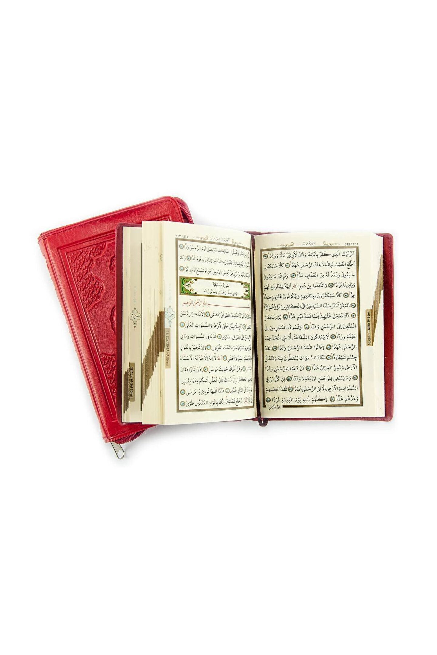 Özellikler Suni Deri Çantalı Kuranı Kerim, 9x12 cm Cep Boy Renk: Bordo Yaldız: Kenar Yaldızlı Baskı Rengi. ; 2 Renk Kapak: Deri Yan Kağıt: Lüks Yan Kağıt İç Kağıt: Şamua Kağıt Cilt Şekli: Sert Kapak Sayfa: 616 Sayfa Fihristli: Var Lüks ciltli KUR'AN'dır. ; Diyanet İşleri Başkanlığı Mushafları İnceleme ve Kıraat Kurulu'ndan Onaylı ve Mühürlü Bu Kur'ân-ı Kerim Hafız Osman Hattına sâdık kalınarak Sayfa Tutar, Berkenar, Secavendli, Med'li ve Kasır'lı olarak hazırlanmıştır Milyonlarca insanın Kur'ân-ı Kerim okumasını öğrendiği hattan. ; BİLGİSAYAR HATLI ve OKUMASI KOLAYDIR. ; KUR'AN'IN sadece ARAPÇASI VARDIR. ; 1. ; Hamur Şamua kağıda baskılıdır. ; Hafif sarımsı kağıttır. ; Görseller kendi stüdyomuzda, kendi fotoğrafçımız tarafından çekilmiştir. ; Ürünün aynısı gelecektir. ; AYFA yayınları KURANI KERİM.;