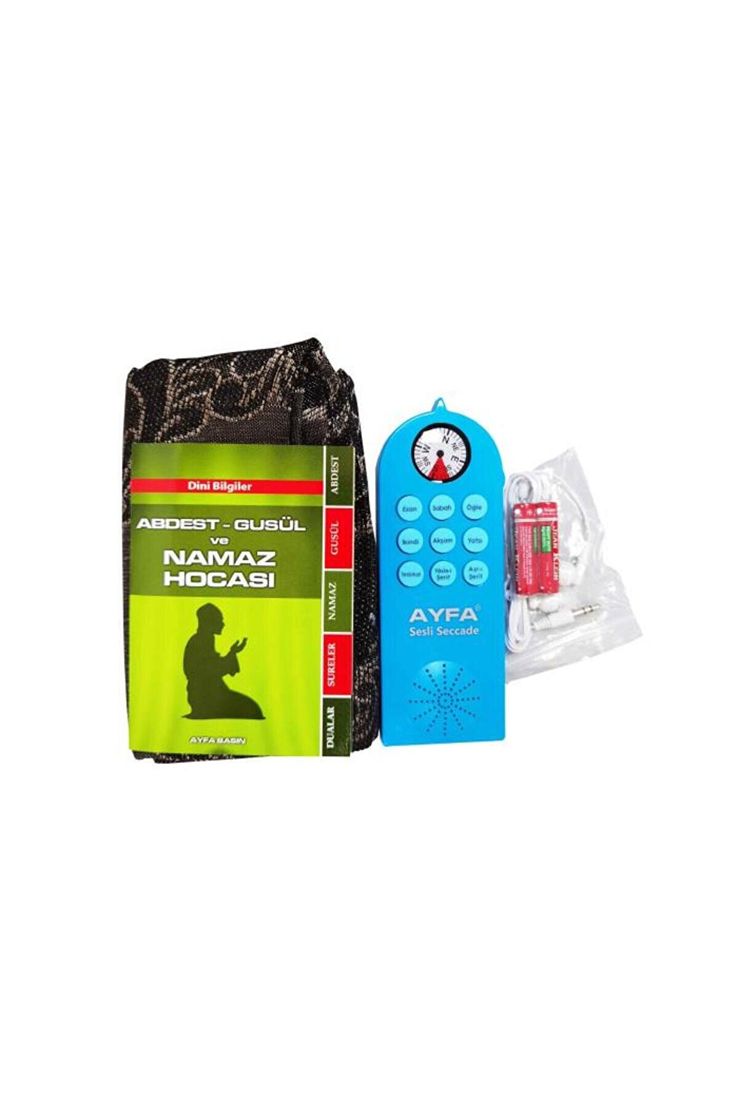 Namaz Kıldıran Sesli Seccade Yasin-i Şerifli-Kulaklıklı-Pusulalı Mavi - AYFA505MKod: AYFA505M Rabbimizin emri olan namazı çocuklarımızın namazlarını kılmaya alışmalarında ve ilk öğrenme aşamalarında eksiksiz ve en doğru şekilde namazlarını kılmalarını kılmayı öğrenmeleri için hazırlanmış bu eşsiz ürün ile çocuklarınız namaz kılmayı eğlenerek öğrensin.; PAKET İÇERİĞİ: 1 Adet Namaz Kıldıran Sesli Seccade Cihazı 1 Adet Seccade 2 Adet Kumanda Pili (AAA) 1 Adet Kablolu Kulaklık NAMAZ KILMAYI ÖĞRETEN SECCADE TEKNİK ÖZELLİKLERİ: Sesli Seccade Diyanet Başkanlığı Din İşleri Yüksek Kurulu Uzmanı Davut KAYA'nın sesinden 5 vakit namaz İki renk seçeneği (Mavi - Pembe) Dini bilgiler kitapçığı hediyeli Pusulalı CİHAZDA OLAN SESLER EZAN - SABAH NAMAZI - ÖĞLE NAMAZI - İKİNDİ NAMAZI - AKŞAM NAMAZI - YATSI NAMAZI TESBİHAT - YASİN-İ ŞERİF - AŞRI ŞERİF CİHAZIN ÖZELLİKLERİ Her tuşta bulunan sesler başlat durdur ile çalışır.; Yan tarafında Aç Kapat düğmesi, ses azaltma ve ses çoğaltma vardır.; Kulaklık için soket girişi vardır.; 2 adet kalem pille çalışmaktadır.; Not: Garanti süresi, ürünün teslim tarihinden itibaren başlar.; Ürün 1 yıl garantilidir.