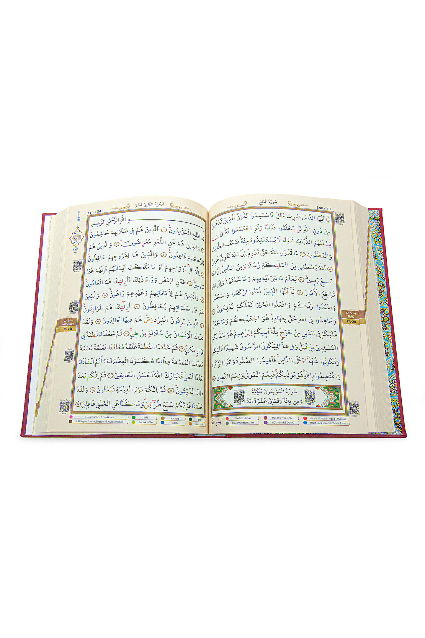ESERİN ÖZELLİKLERİ Diyanet Mühürlü: Diyanet İşleri Başkanlığı Mushafları İnceleme ve Kıraat Kurulu'ndan Onaylı ve Mühürlü Hat: Milyonlarca insanın Kur'ân-ı Kerim okumasını öğrendiği hattan.Okuması çok kolay bilgisayar hatlı QR Kod Teknolojisi: Var İç Baskı Özelliği: 4 Renk Ebat: Rahle Boy Boy: 20 x 28 cm Kapak: Termo İç Kağıt: Şamua Kağıt Fihristli: Var Ağırlık: 1390 gr Önemli Not: Kapak rengi yayın evinin güncel basımda kullandığı kapak rengine göre değişiklik gösterebilmektedir. ; Örnek Renkler:Bordo,Yeşil,Nır,Fuşya,Siyah,Turkuaz dır. ; Termo Deri, Tecvidli Kur'ânı Kerim;