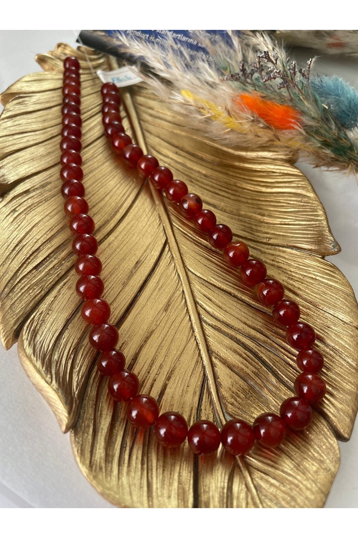AYSHO Kırmızı Carnelıan Karnelyan Akik Doğal Taş Dizi (8 Mm) (sertifikalı)