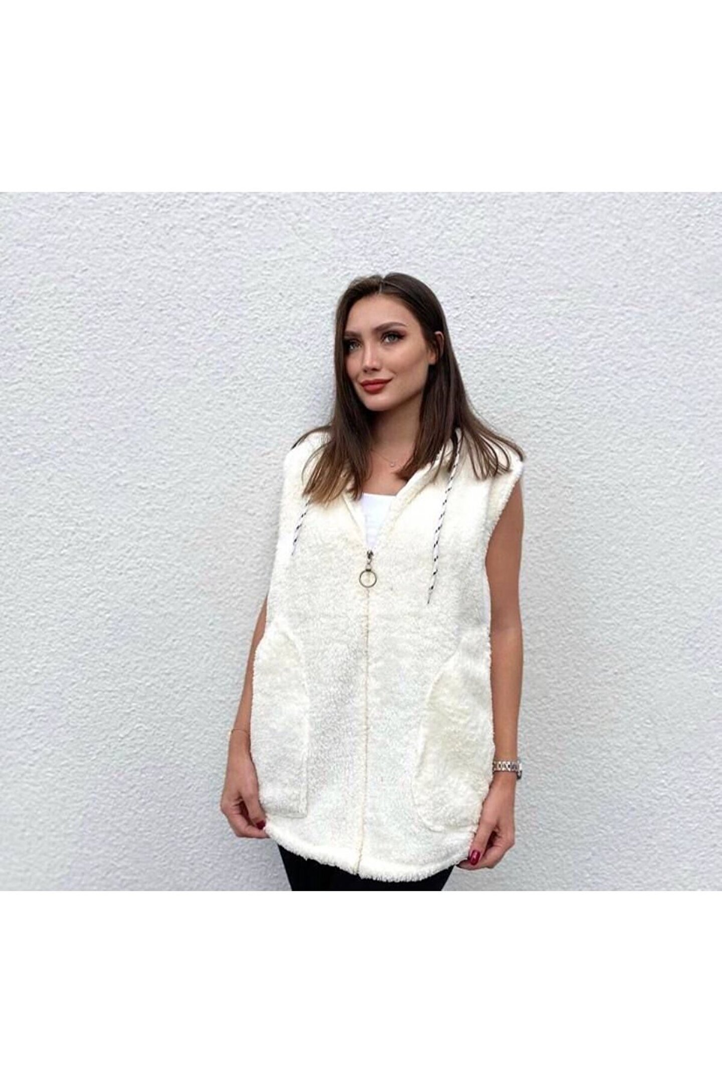 Kadın Kapüşon Ve Fermuar Detay Welsoft Kolsuz Yelek