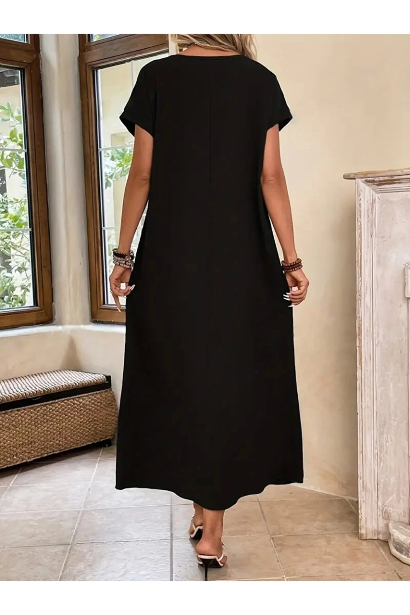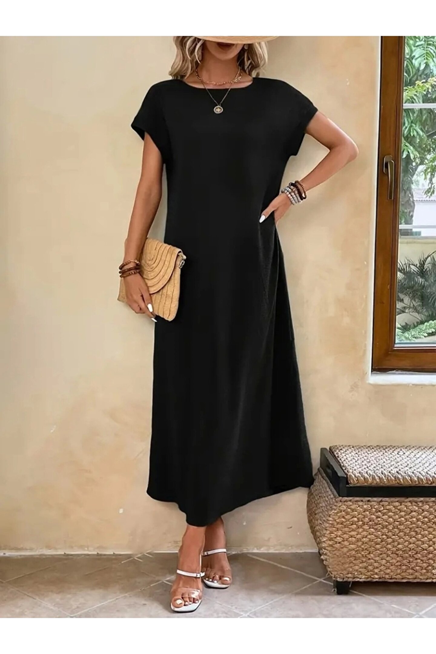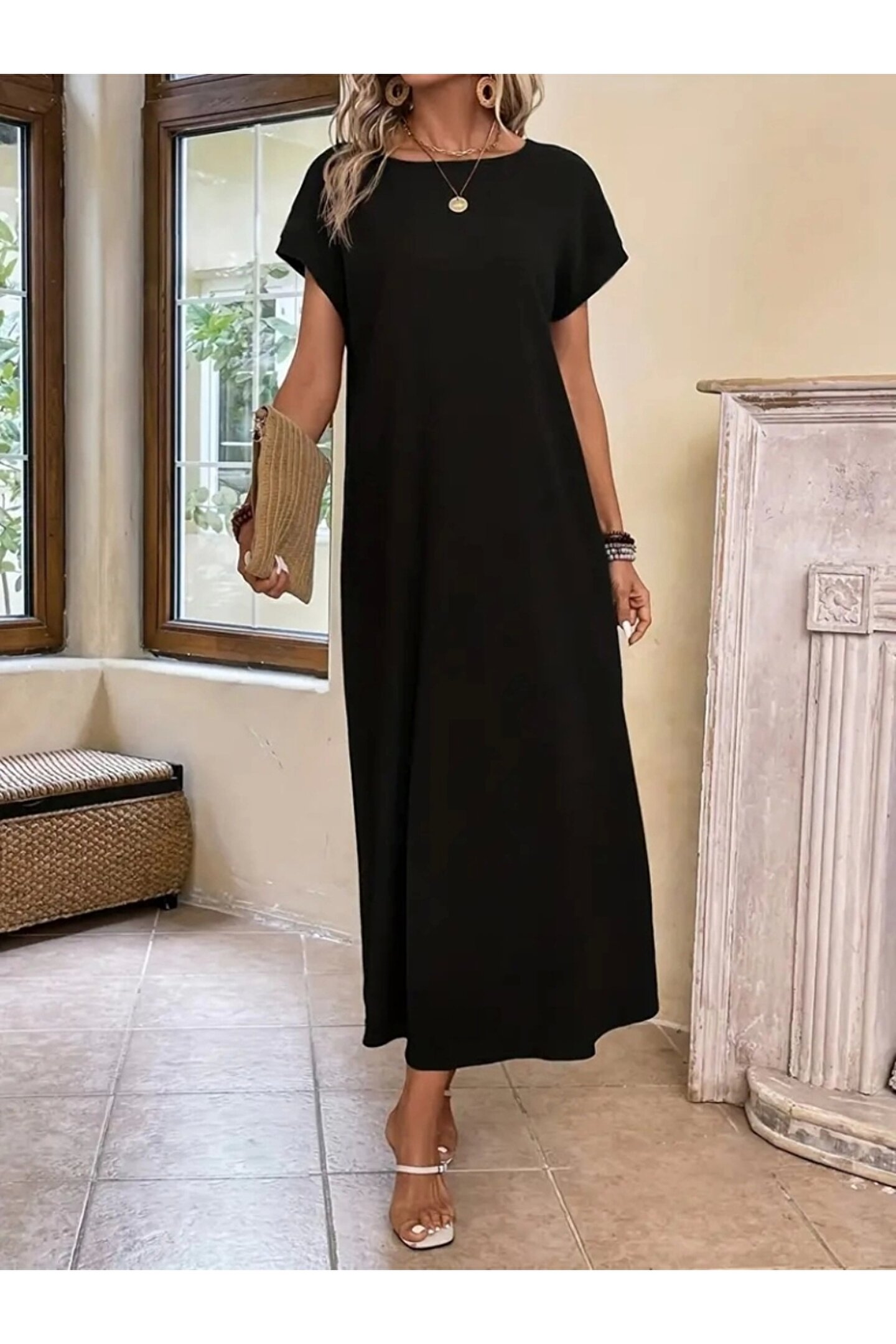 babatr.com Kadın Uzun Kollu Yakası Açık Viskon Elbise