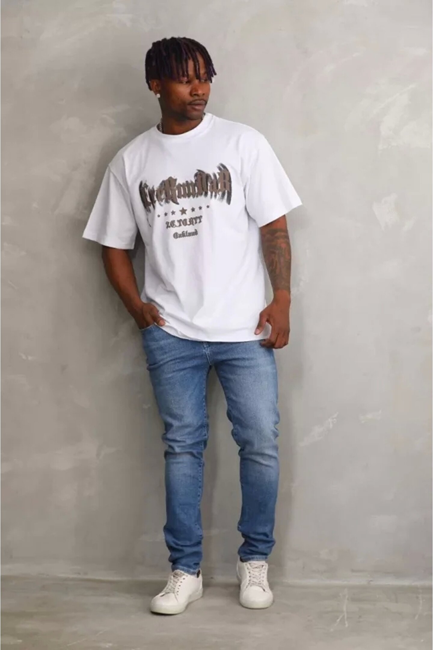 Unisex Baskılı Oversize T-Shirt - Beyaz