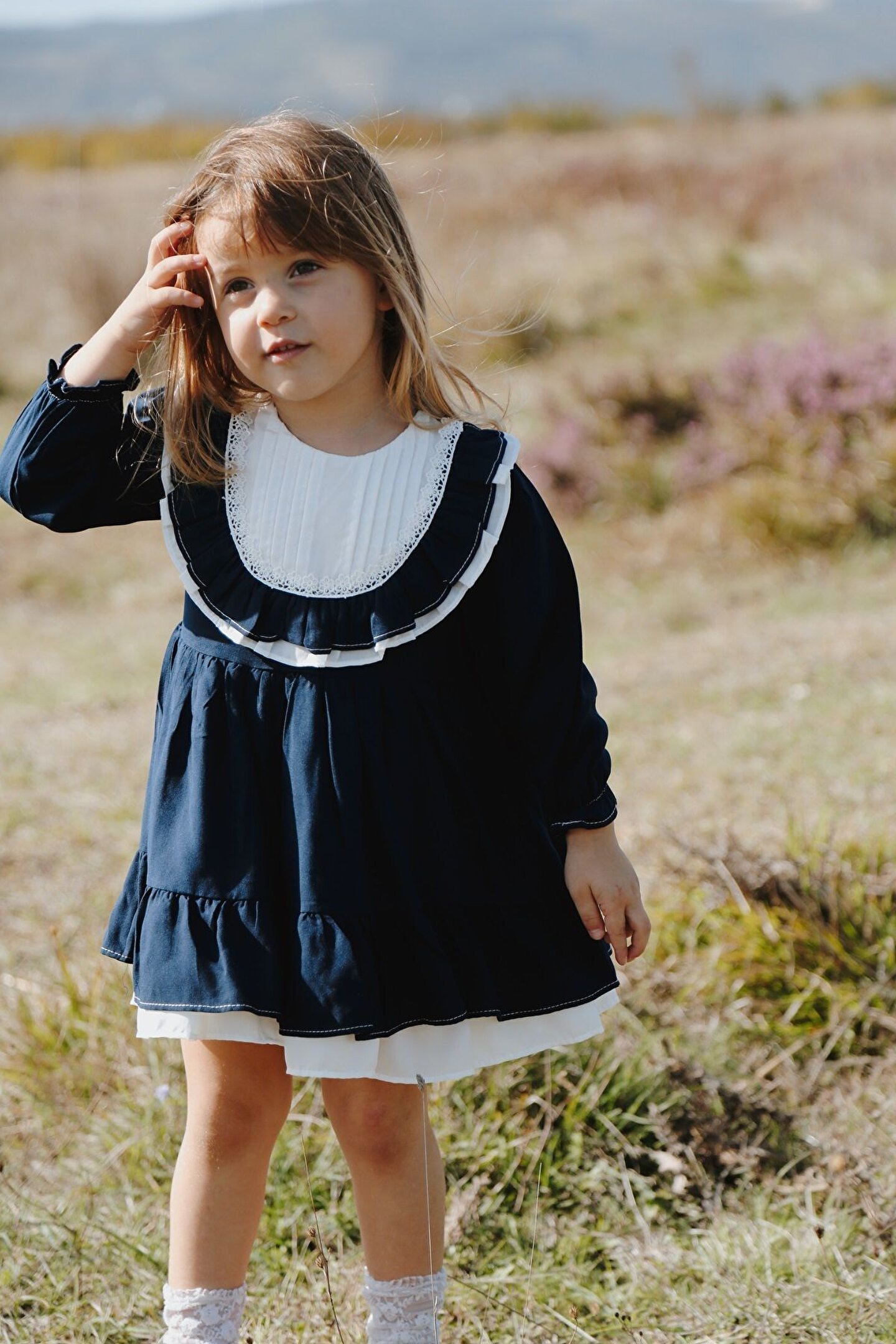 Kadın Uzun Kollu Bisiklet Yaka önden Volanlı Ithal Krep Elbise