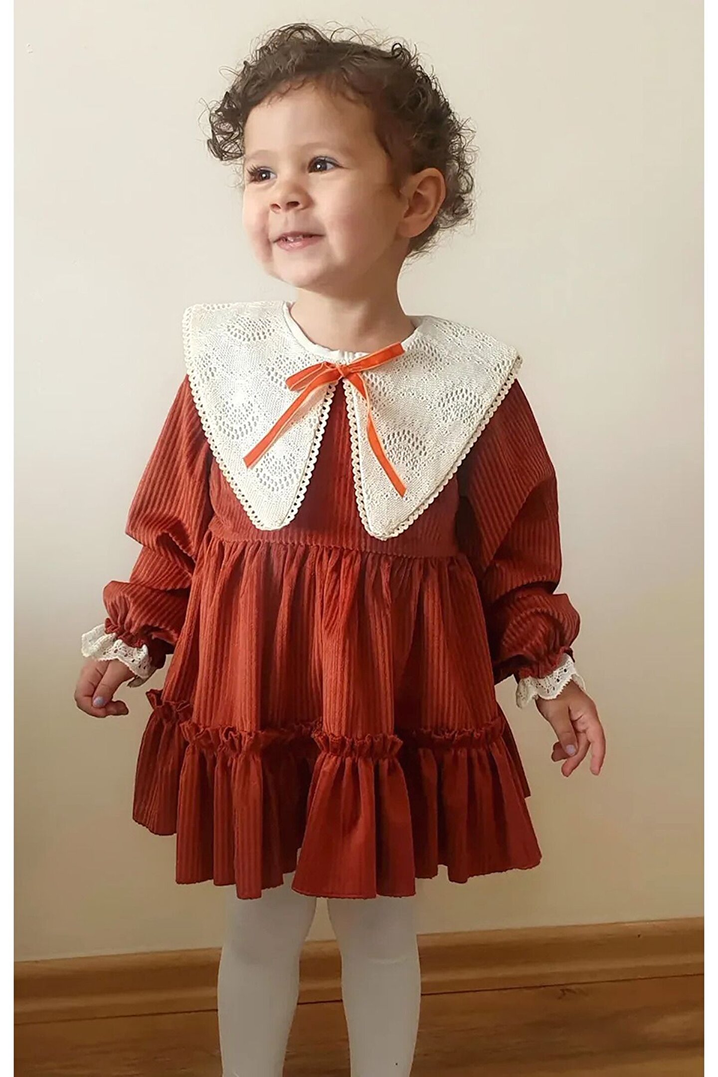 Kız Bebek Elbise Kız Çocuk Elbise Doğum Günü Parti Düğün Elbise Dantelli Uzun Kol Astarlı Elbise