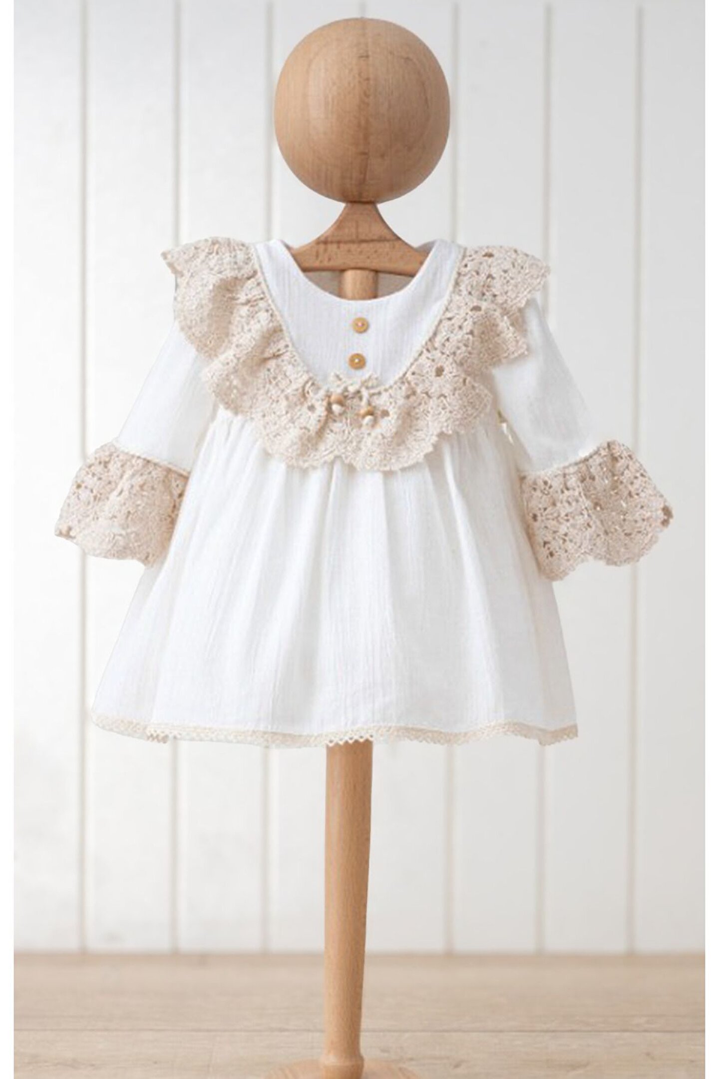 Kız Bebek Elbise Kız Çocuk Elbise Doğum Günü Parti Düğün Keten Uzun Kollu Astarlı Elbise