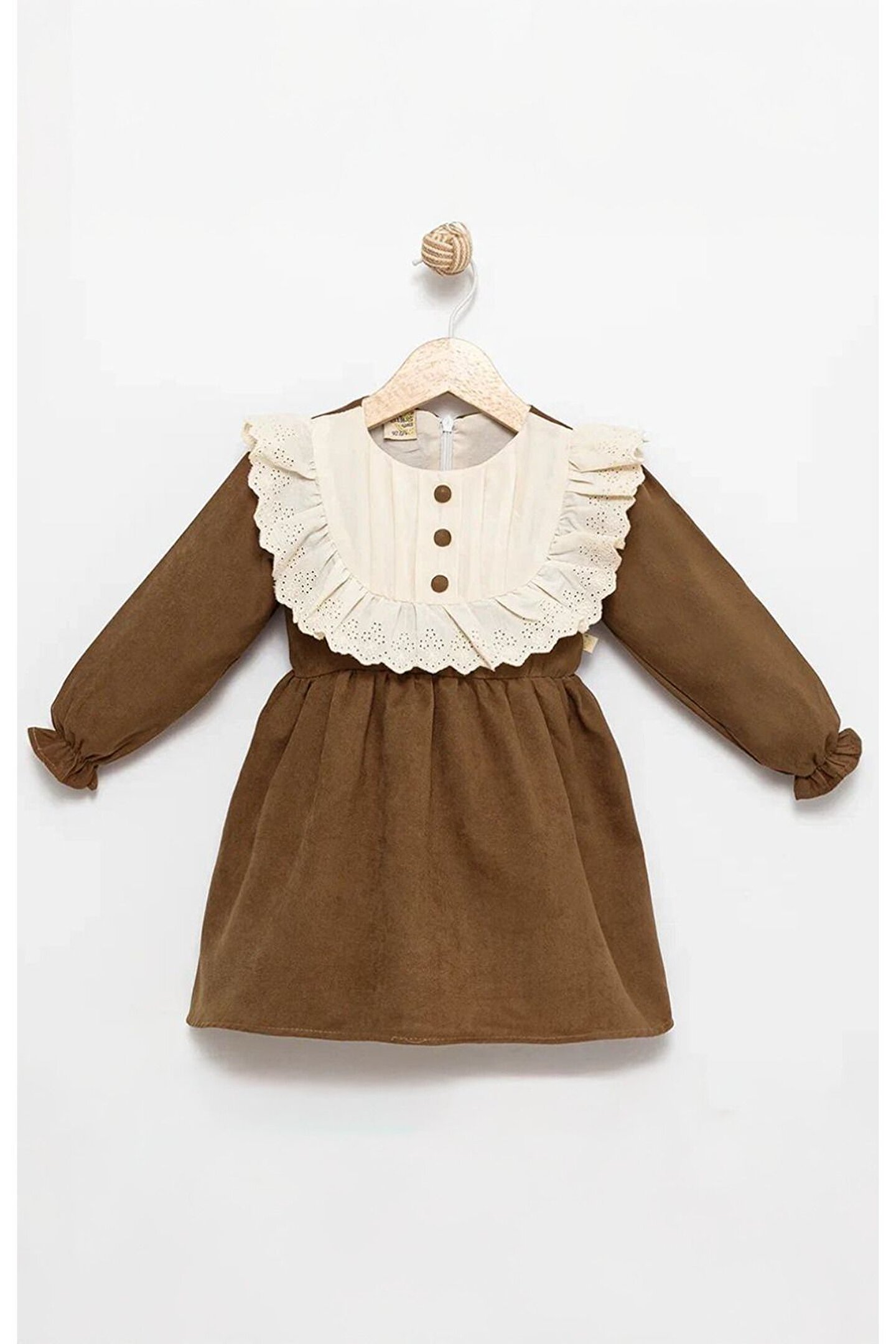 Kız Bebek Elbise Kız Çocuk Elbise Doğum Günü Parti Düğün Süet Uzun Kollu Astarlı Elbise