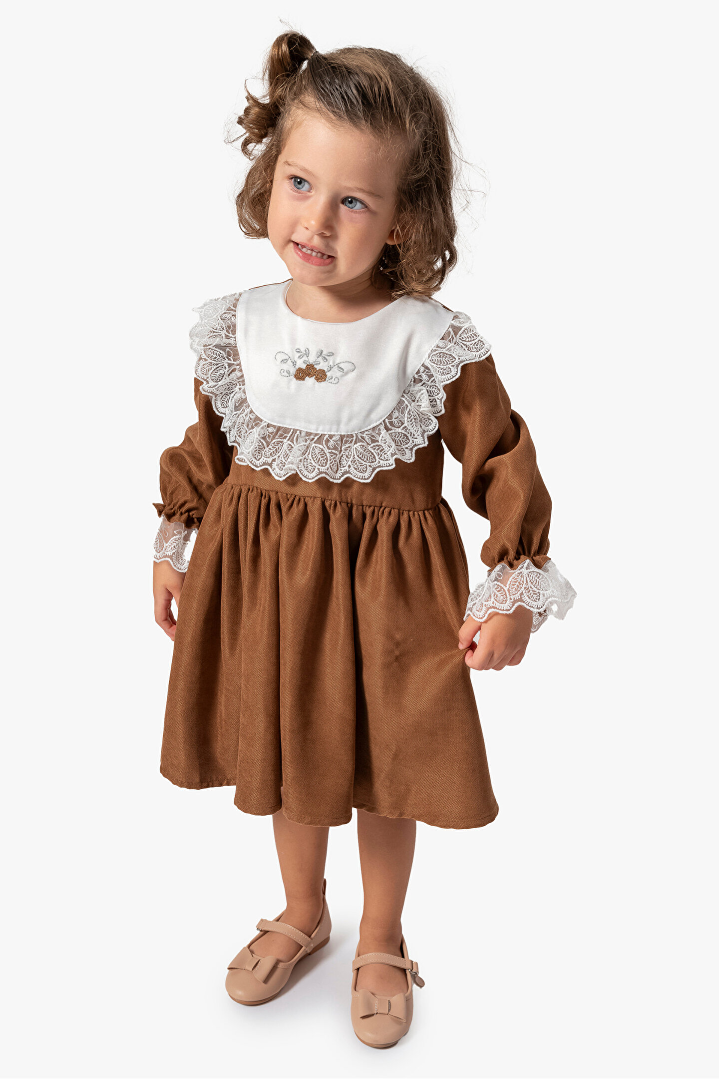Kız Bebek Elbise Kız Çocuk Elbise Doğum Günü Parti Düğün Elbise Uzun Kol Astarlı Dantelli Bebek Giyi