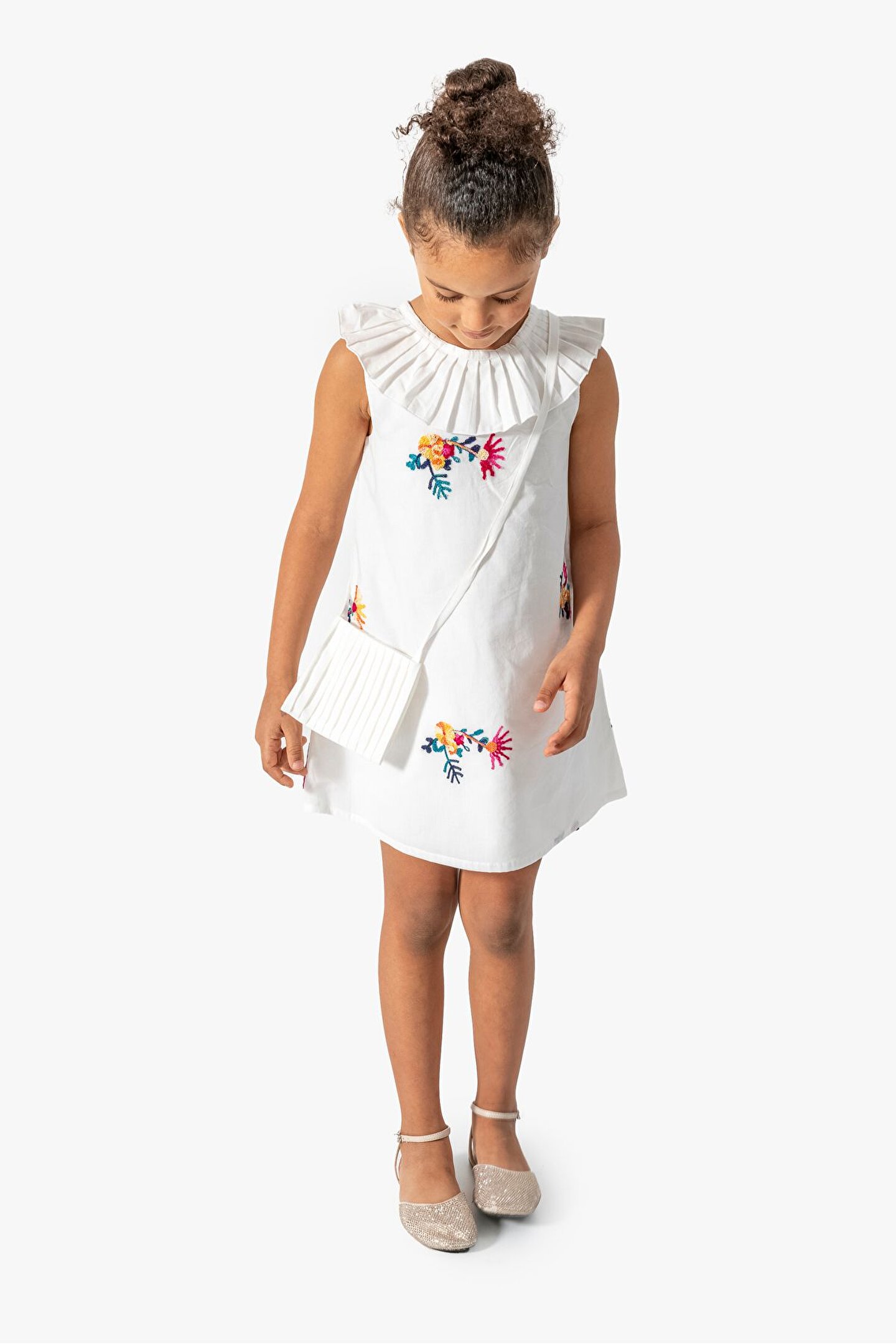 Kız Bebek Kız Çocuk Doğum Günü Parti Düğün Elbise Kısa Kol Kolsuz Nakışlı Çantalı Astarlı