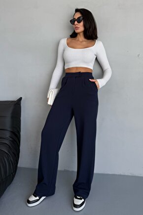 BACK Cırtlı Ayarlanabilir Bel Likralı Palazzo Pantolon