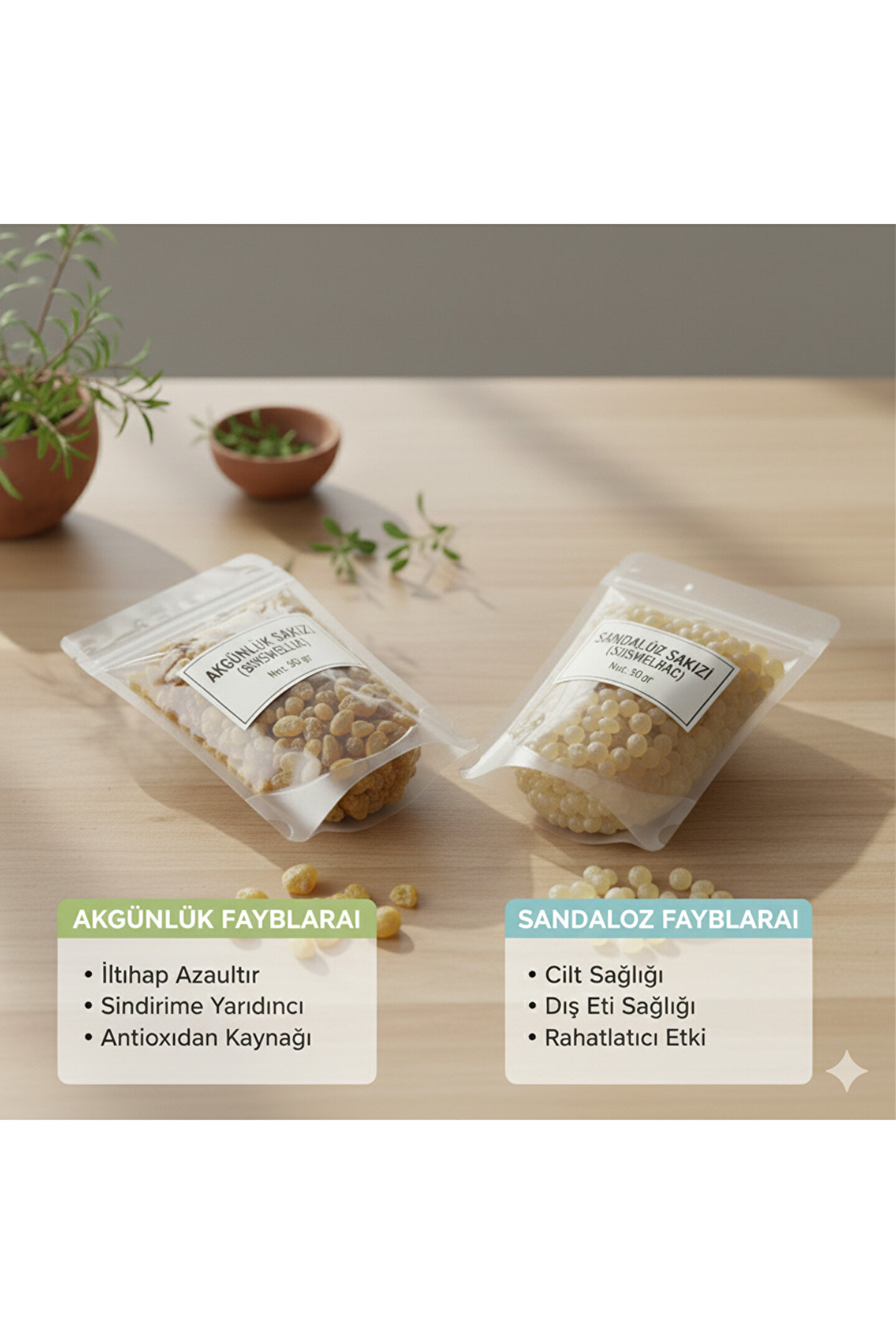 andaloz Sakızı & Akgünlük Sakızı 2’li Set (100 gr Toplam) Doğanın bize sunduğu en değerli reçinelerden Sandaloz Sakızı ve Akgünlük (Boswellia) Sakızı, bir arada tek sette! Tamamen doğal, katkısız ve bitkisel kaynaklı bu ürün, hem geleneksel hem de modern kullanım alanlarında kendine yer bulur.;