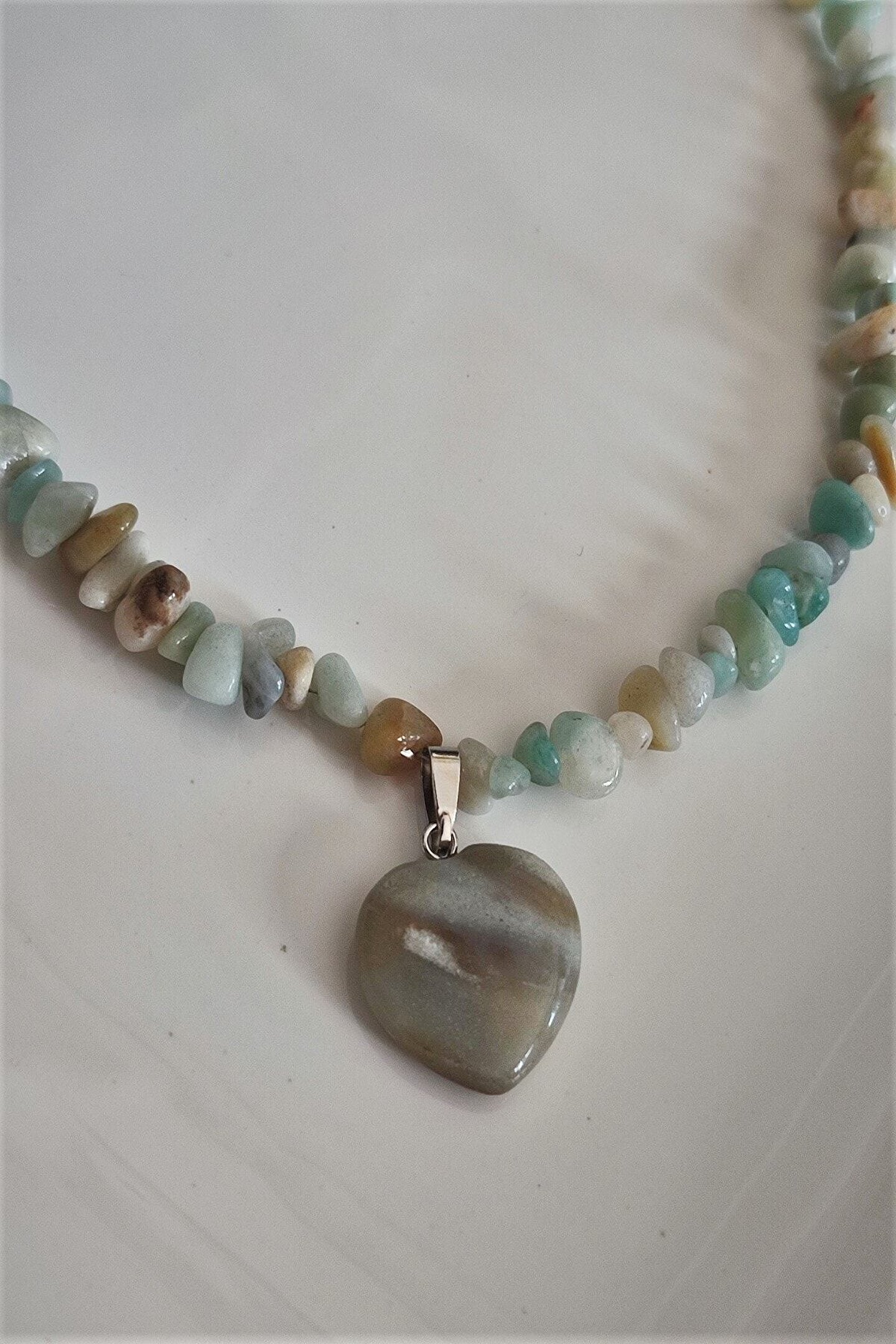Amazonit taşı, doğanın sunduğu nadide güzelliklerden biridir ve bu özel kolyede zarifçe işlenmiş.; Doğal taş kullanımı sayesinde her parça benzersizdir; her biri kendine özgü dokunuşlarla hayat bulur.; Bu kolye, günlük kullanımda bileğinizde doğal bir zarafet sergilerken, aynı zamanda doğanın enerjisini taşıyarak pozitiflik hissi verir.; Amazonit taşı, duygusal dengeyi destekleyen özellikleri ile stresle başa çıkmada yardımcı olurken, aynı zamanda zihinsel netliği artırır.; Taşın kendine özgü parlaklığı ve renk geçişleri ile göz alıcı bir görünüm sunar; her ortamda dikkat çeker.;