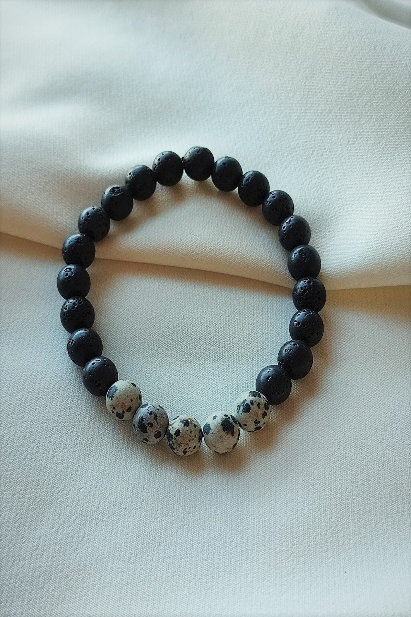 Doğal taş kullanımı, her bir bilekliğin benzersiz ve otantik bir görünüm kazanmasını sağlar; 8 mm boyutundaki benekli (dalmaçya) jasper taşı, zarif ve şık bir dokunuş sunar; Sertifikalı doğaltaş kullanımı, ürünün kalitesini ve orijinalliğini garanti eder; Lav taşı bileklik, hem günlük kullanım hem de özel günler için ideal bir aksesuar seçeneği olarak öne çıkar;