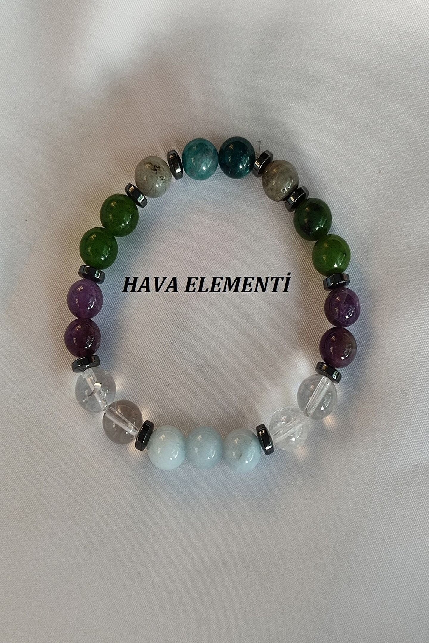 Doğal taş kullanımı sayesinde her bileklik benzersiz ve özgün bir görünüm sunar; Sertifikalı hava elementi doğaltaş bileklik, kalite ve güvenilirliği garanti eder; Doğal taşların eşsiz dokusu ve renkleri, her kıyafetle uyum sağlayarak stilinizi tamamlar; El yapımı ve özenle seçilmiş taşlar, bilekliğinize zarif bir dokunuş katar;