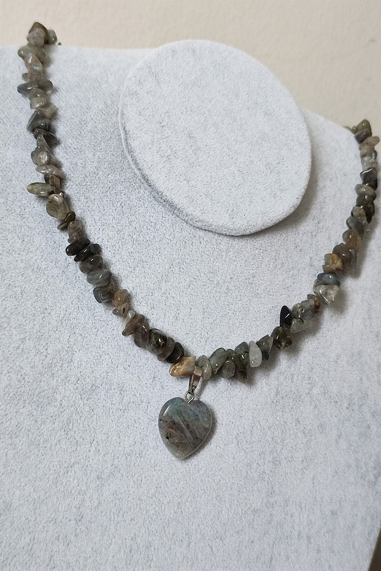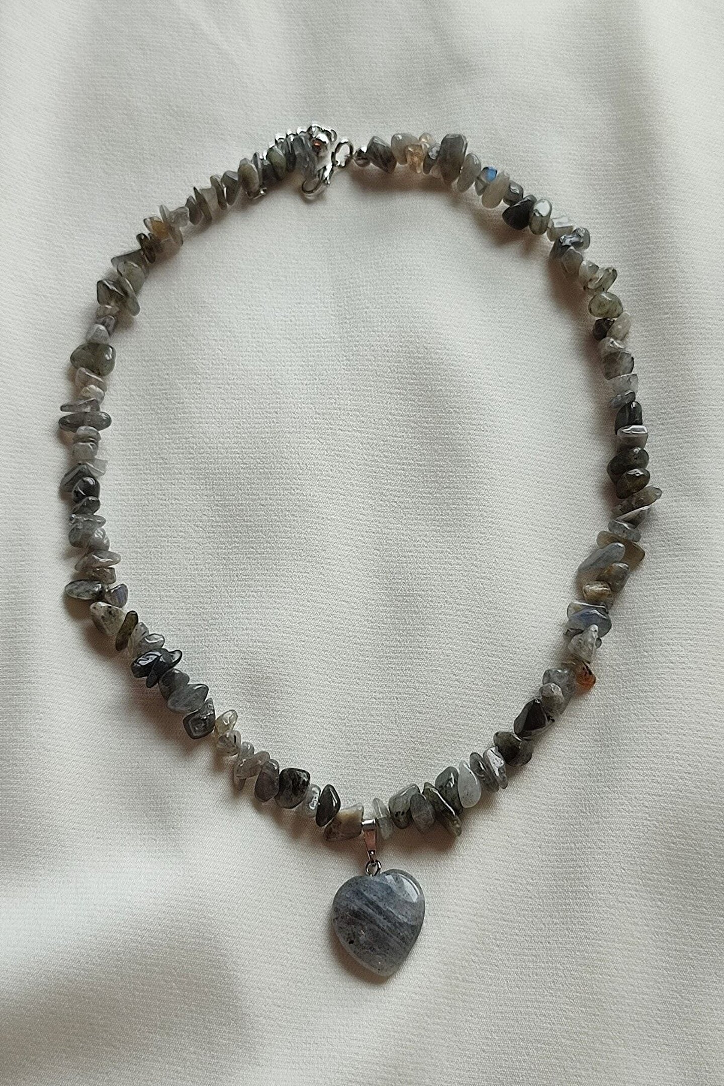 badeaccessories Sertifikalı Labradorit Kırıktaş Doğaltaş Kalp Kolye