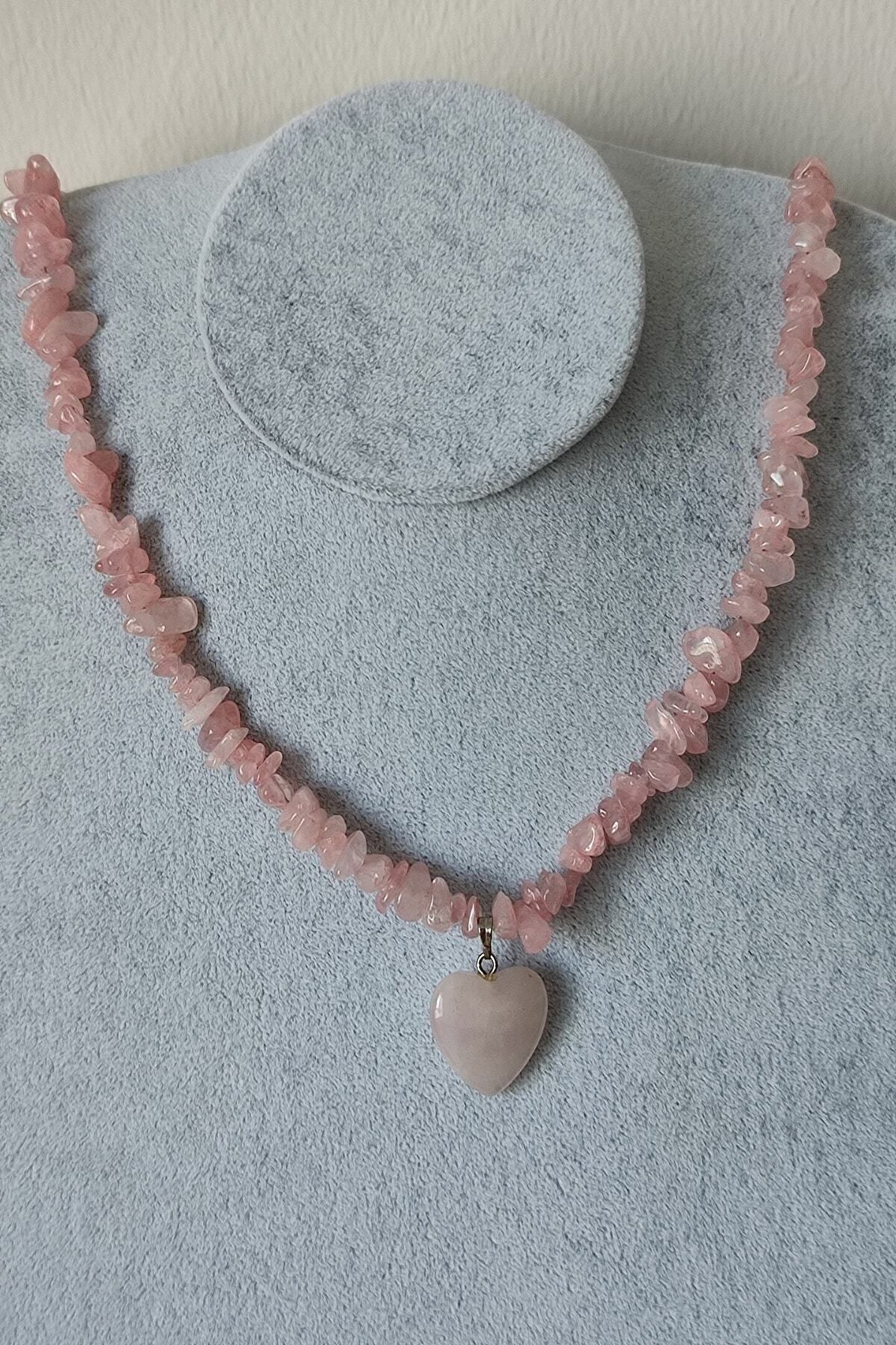 Doğal taş kullanımı sayesinde her kolye benzersiz ve otantik bir görünüm sunar; Pembe kuvars kırıktaş doğaltaş, zarif ve şık tasarımıyla dikkat çeker; Sertifikalı doğaltaş kullanımı, ürünün kalitesini ve güvenilirliğini garanti eder; Kolye, hem günlük kullanım hem de özel günler için ideal bir aksesuar seçeneği sunar;
