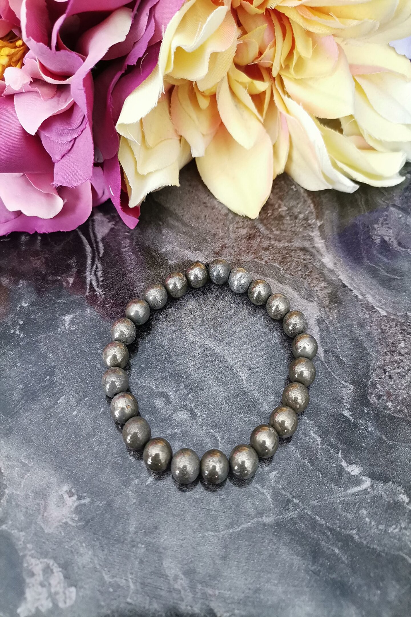 Doğal taş kullanımı, her bir bilekliğin benzersiz ve otantik bir görünüm kazanmasını sağlar; Sertifikalı pirit doğaltaş bileklik, kalite ve güvenilirlik açısından öne çıkar; Doğal taşların estetik ve şık tasarımıyla günlük kullanım için ideal bir aksesuar seçeneği sunar; Pirit doğaltaş bileklik, hem kişisel tarzınızı yansıtmanız hem de özel günlerde şıklığınızı tamamlamanız için mükemmel bir seçimdir;