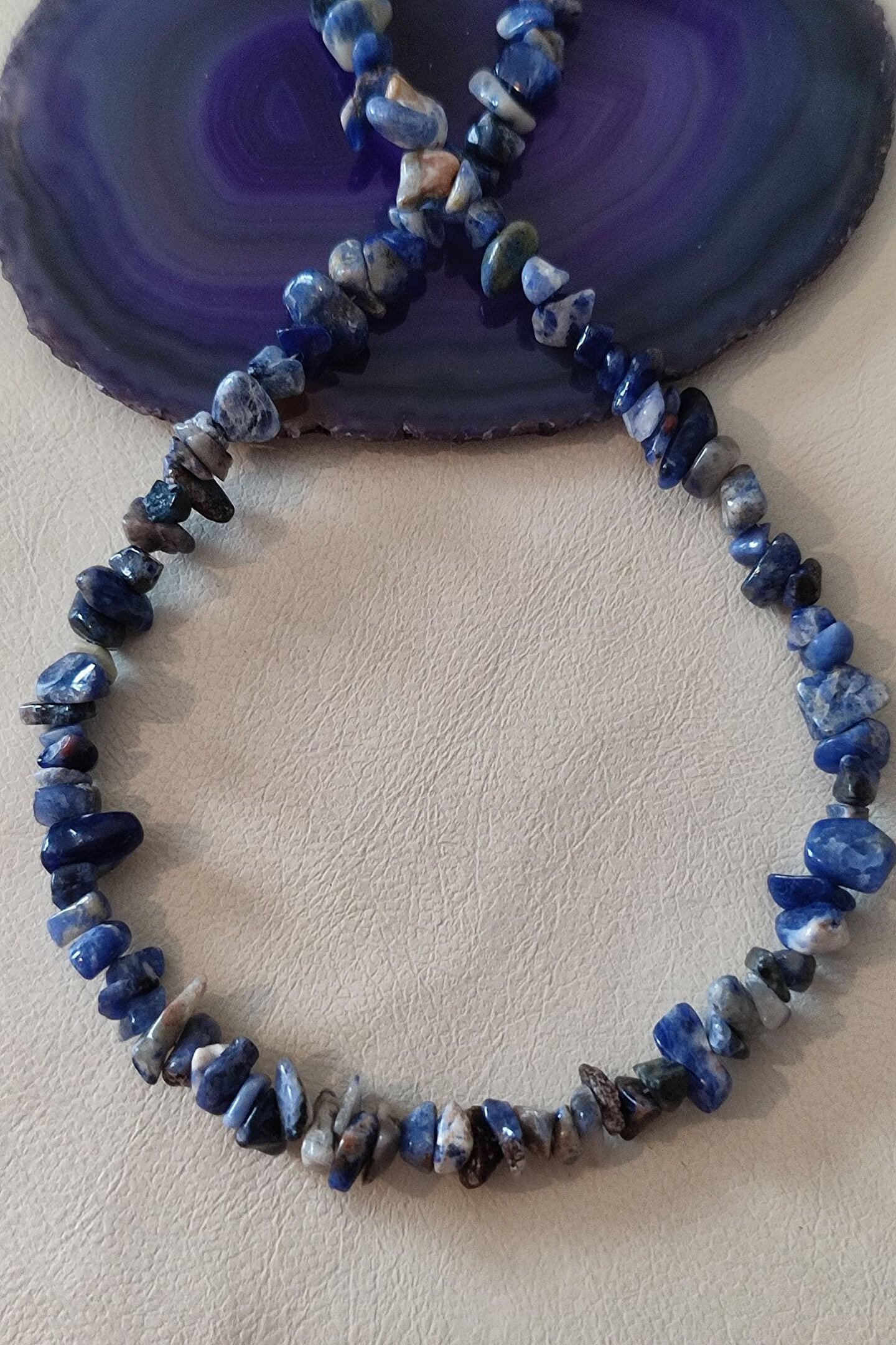 Doğal sodalit kırıktaş kullanılarak tasarlanmış, her biri benzersiz ve şık bir aksesuar olarak öne çıkan kolye.; Özel günlerde veya günlük kullanımda rahatlıkla tercih edilebilecek, doğanın güzelliklerini yansıtan bir aksesuar.; Sodalit taşının benzersiz yapısı sayesinde göz alıcı bir parıltıya sahip, her kıyafetinize eşsiz bir dokunuş katacak.; Sertifikalı doğal taş kullanımı ile hem estetik hem de sağlığınız düşünülerek üretilmiştir; kimyasal işlemlerden geçirilmemiş, doğal güzelliğini koruyarak sizlerle buluşuyor.; Bijuteri kategorisinde yer alan bu kolye, hem kaliteli hem de uygun fiyatlı bir seçenek olarak gardrobunuzdaki yerini alacak.;